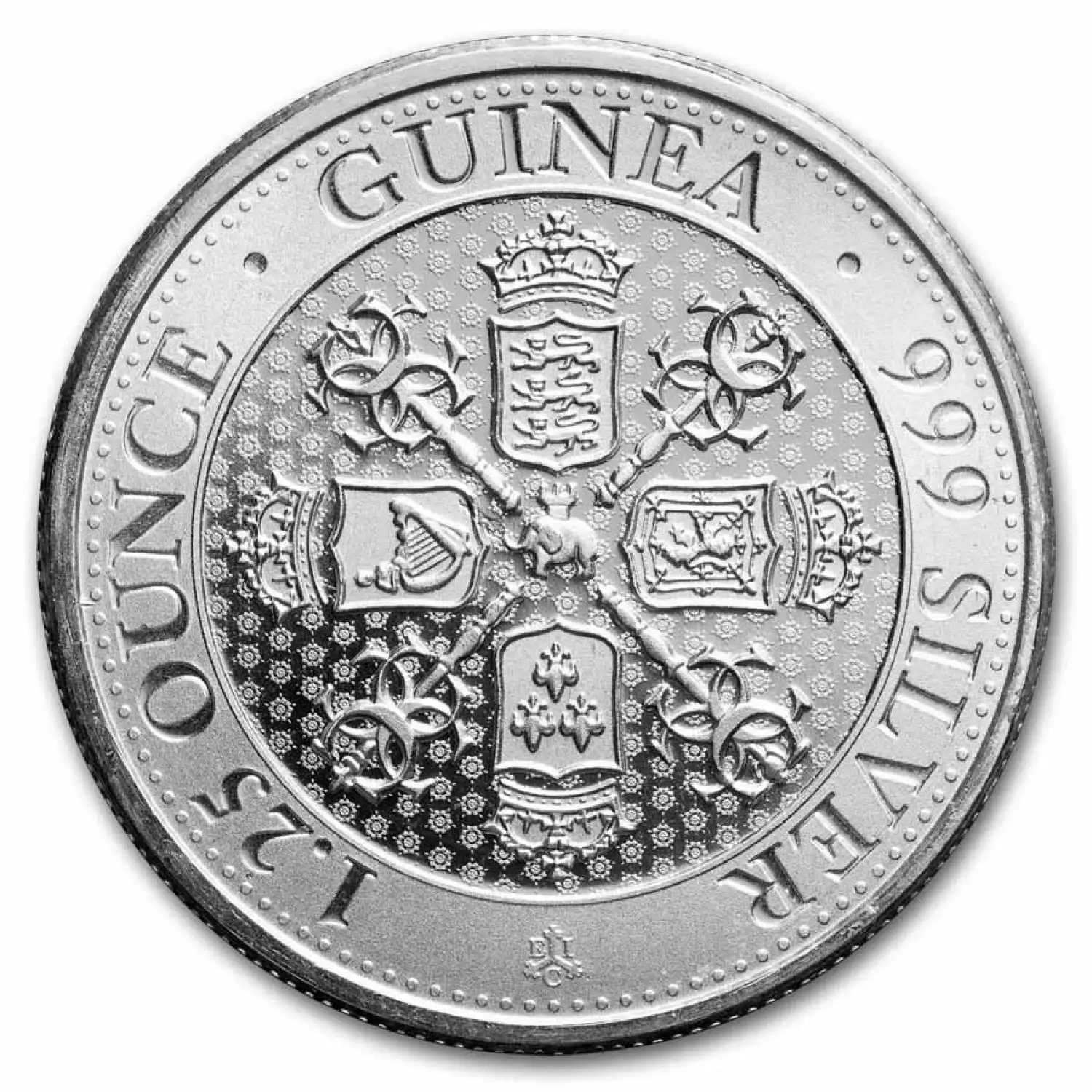 This coin features the Sceptre Guinea Shield design in 1.25 oz of .999 fine silver with a traditional East India Company pattern in the fields.