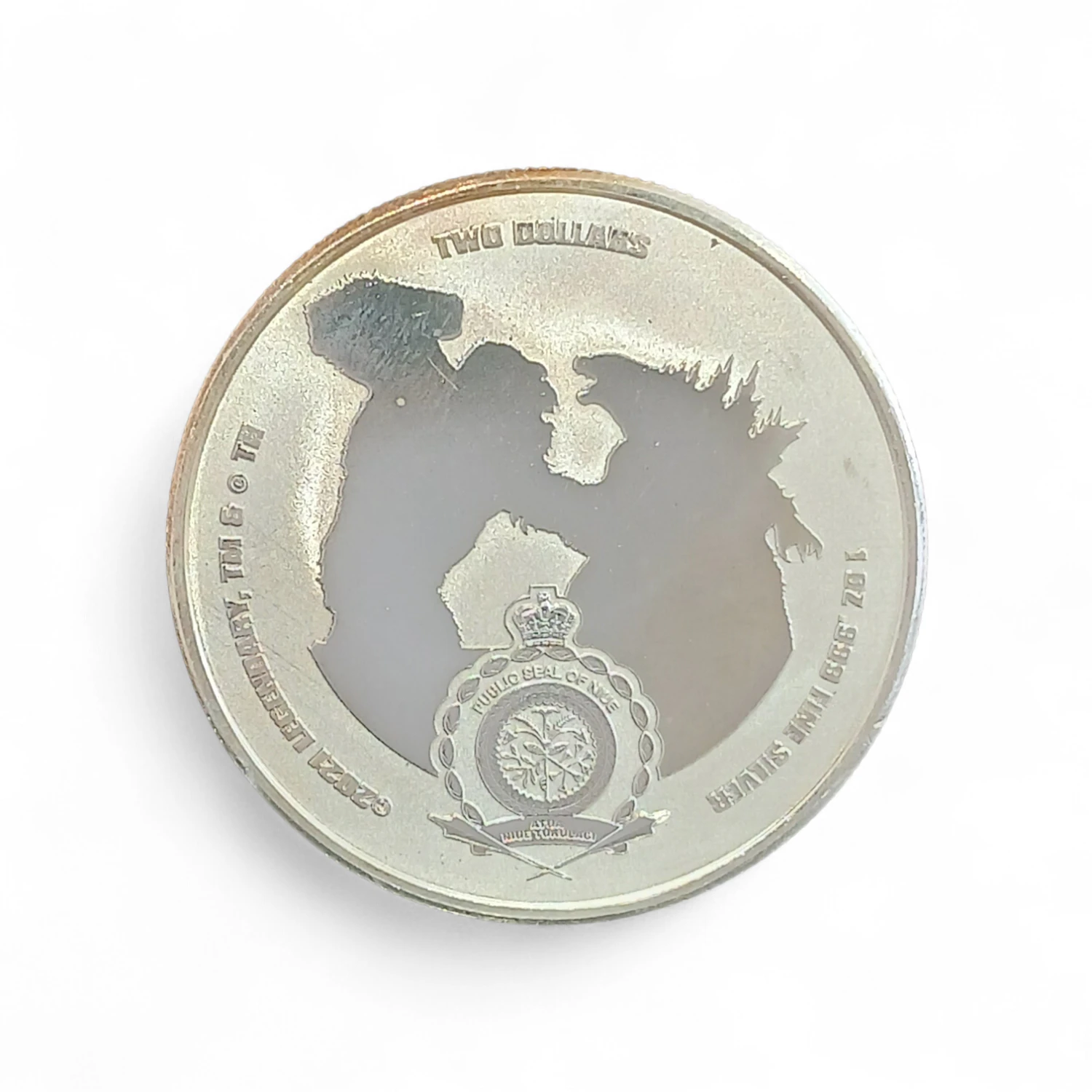 Celebrate the Godzilla vs. Kong movie with this Silver BU coin featuring Kong. There is an extremely limited mintage of 25,000 coins.