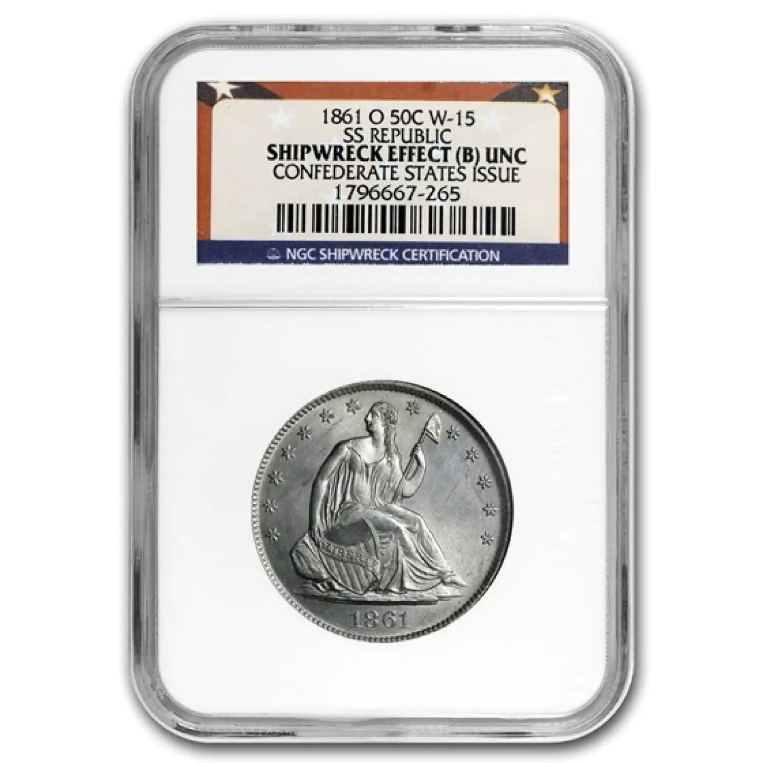 1860/1861 O Half Dollars Liberty Seated NGC Uncirculated SS REPUBLIC New Orleans 3 Coin Set Shipwreck Effect