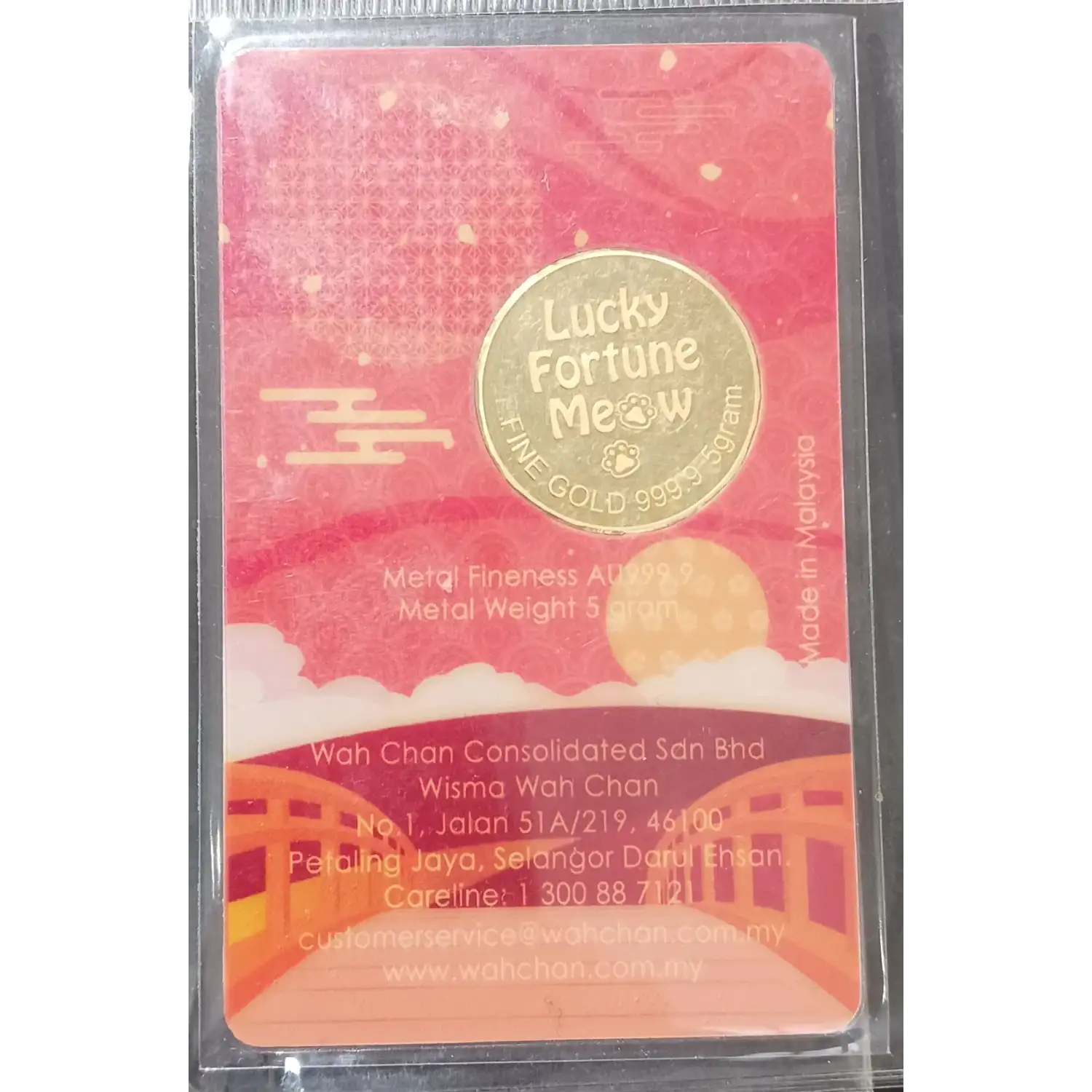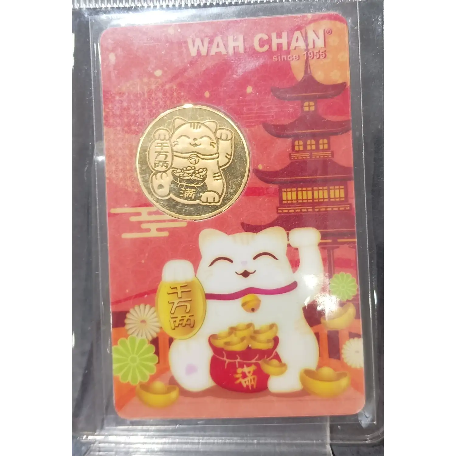 Celebrate prosperity and good fortune with the WAH CHAN 999.9 Fine Gold Coin featuring the Lucky Fortune Meow Cat.