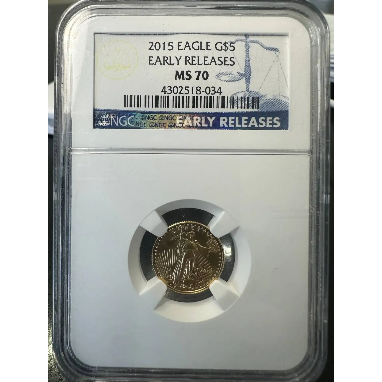 2015 $5 American Gold Eagle 1/10 oz NGC MS-70 EARLY RELEASES