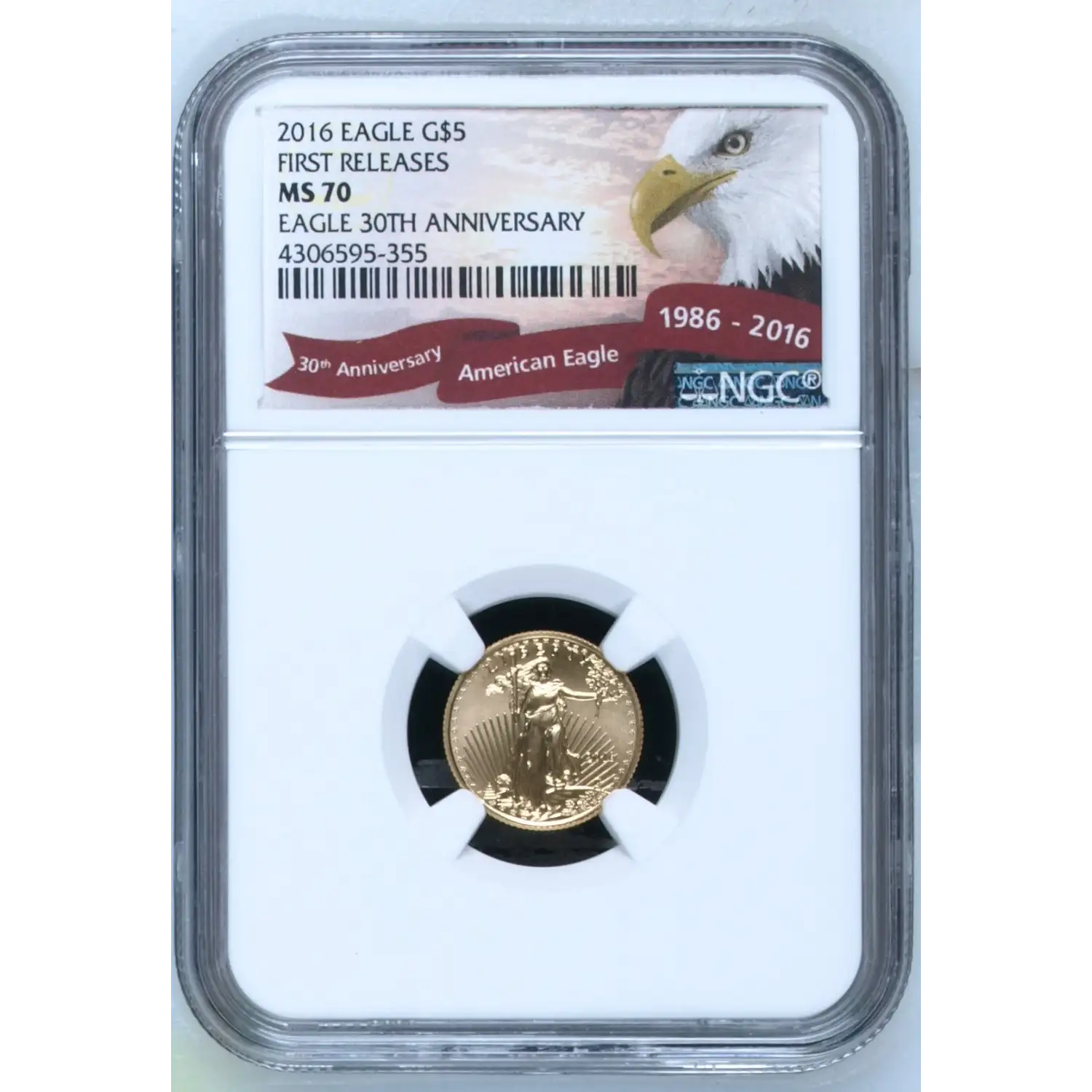 2016 $5 American Gold Eagle 1/10 oz NGC MS-70 FIRST RELEASES