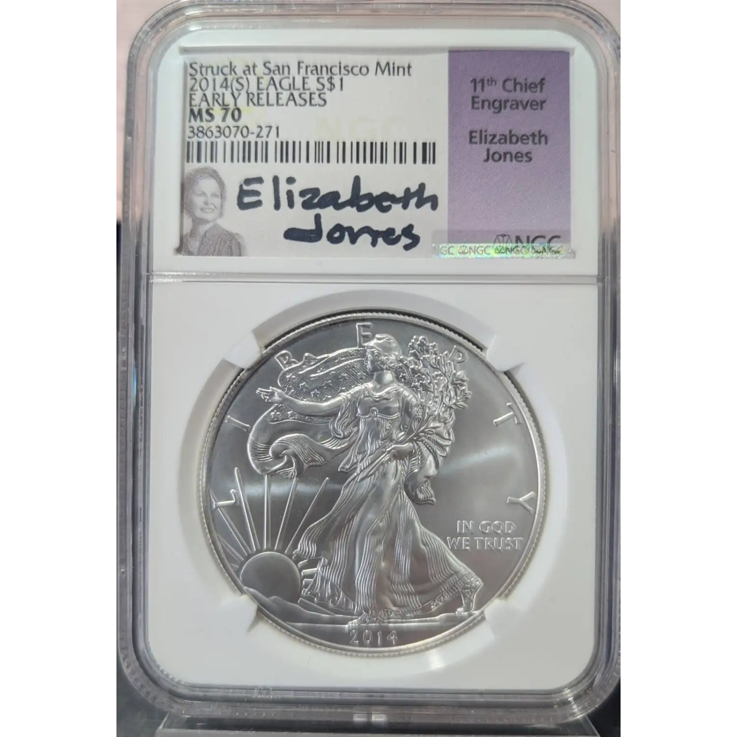 | Name | 2014(S) American Silver Eagle NGC MS70 Early Releases (Elizabeth Jones) |