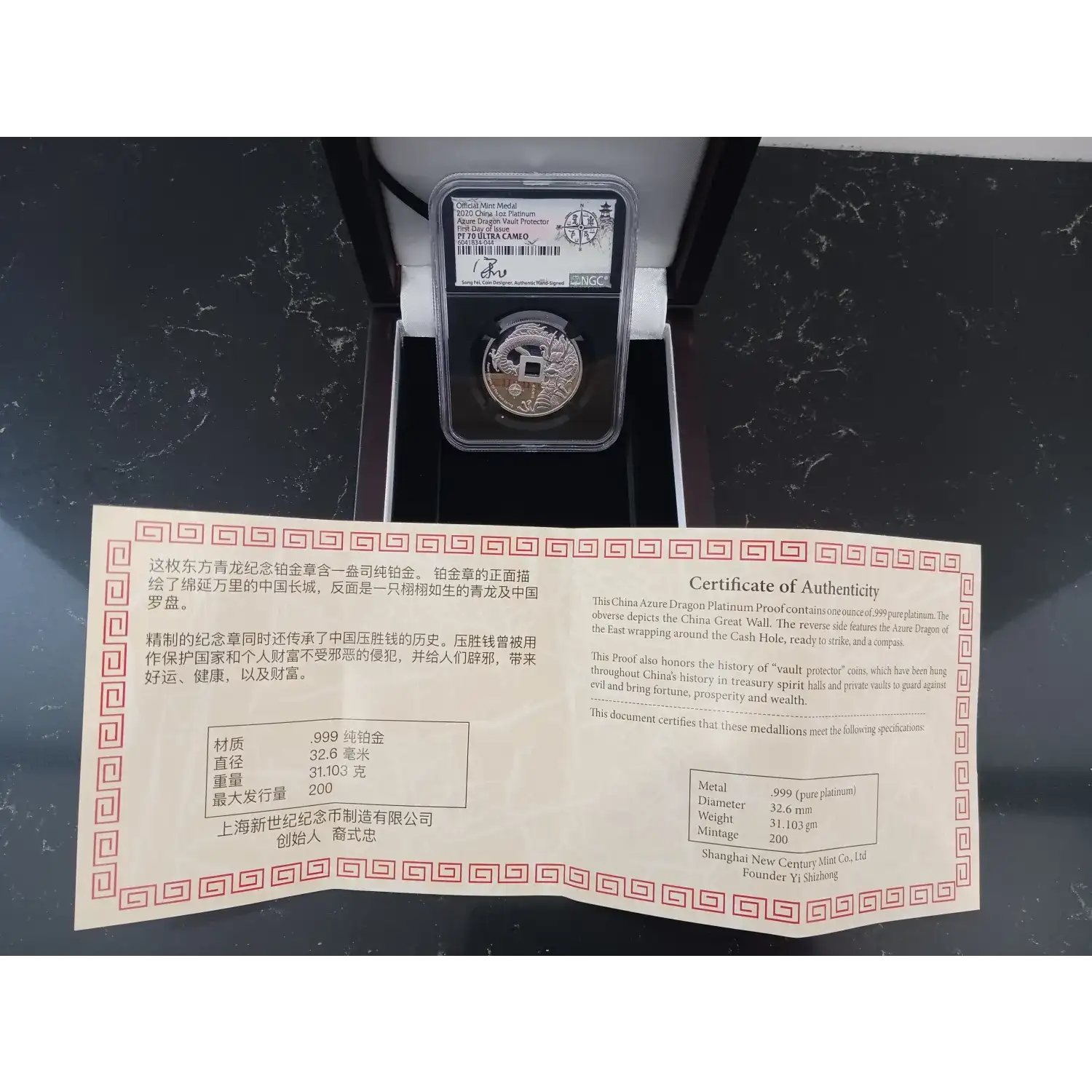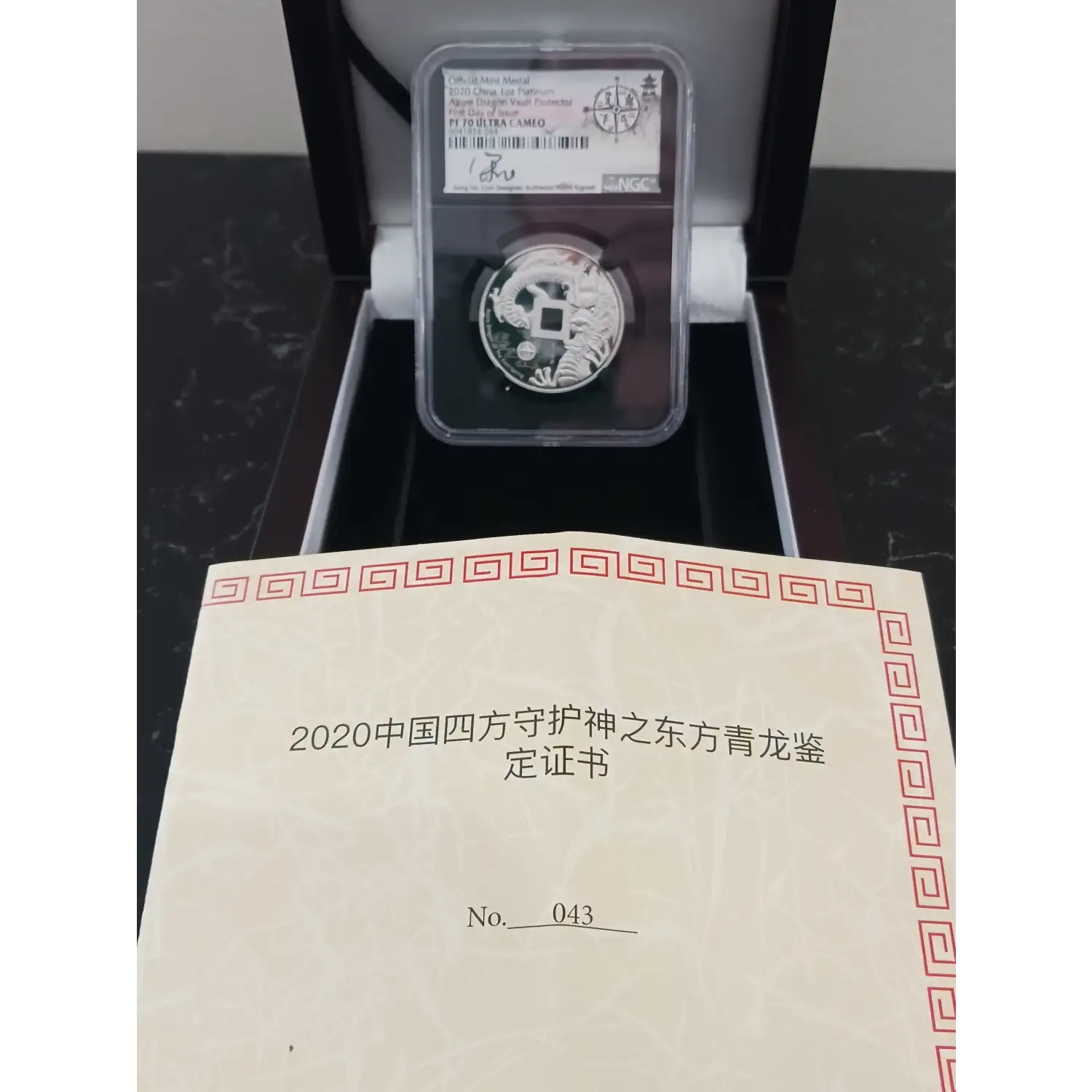 | Name | 2020 China 1 oz Platinum Azure Dragon Vault Protector First Day of Issue PF 70 Ultra Cameo RARE |