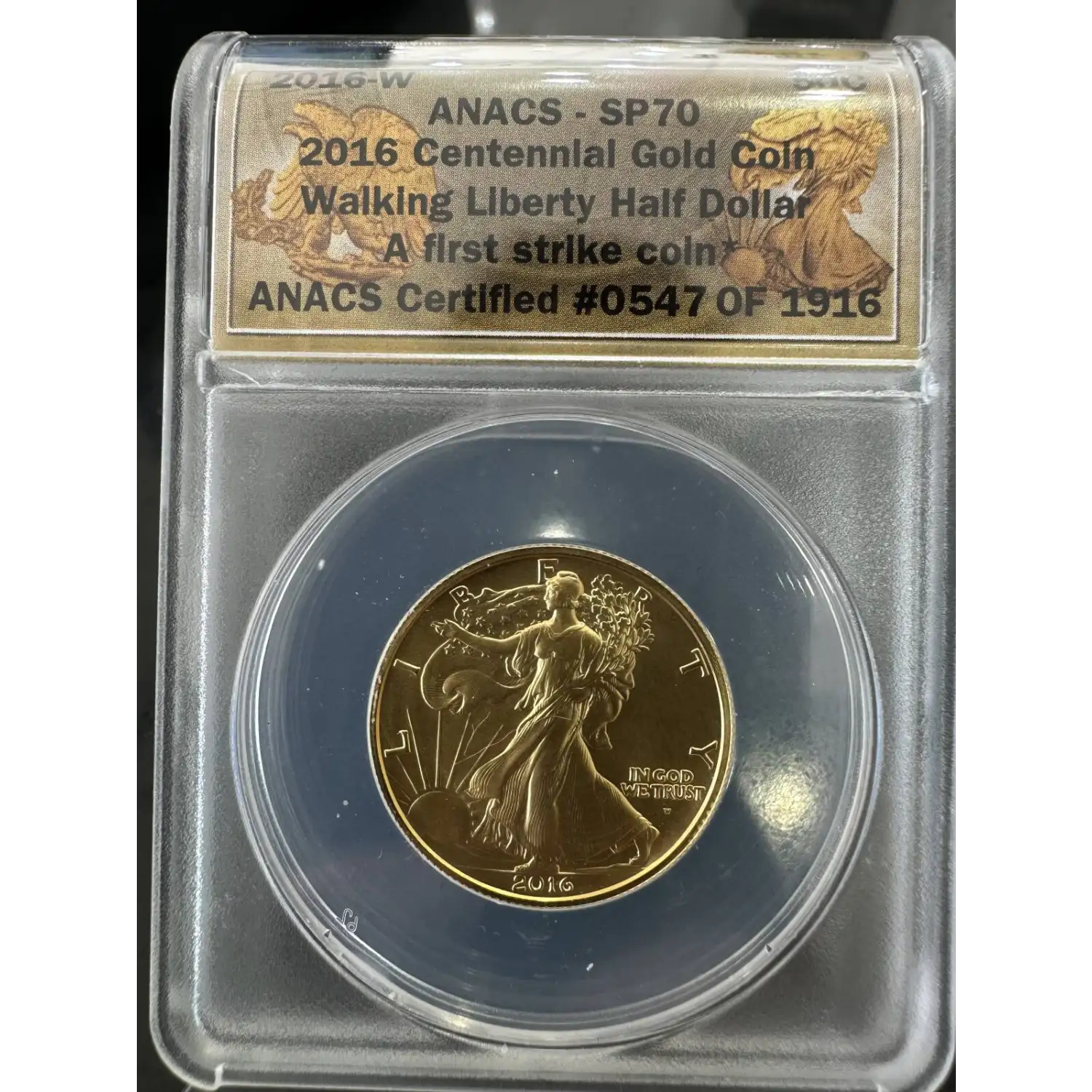 2016 W 50C 100th Anniversary Gold Walking Liberty Half Dollar Commemorative ANACS SP-70 #0547 of 1916