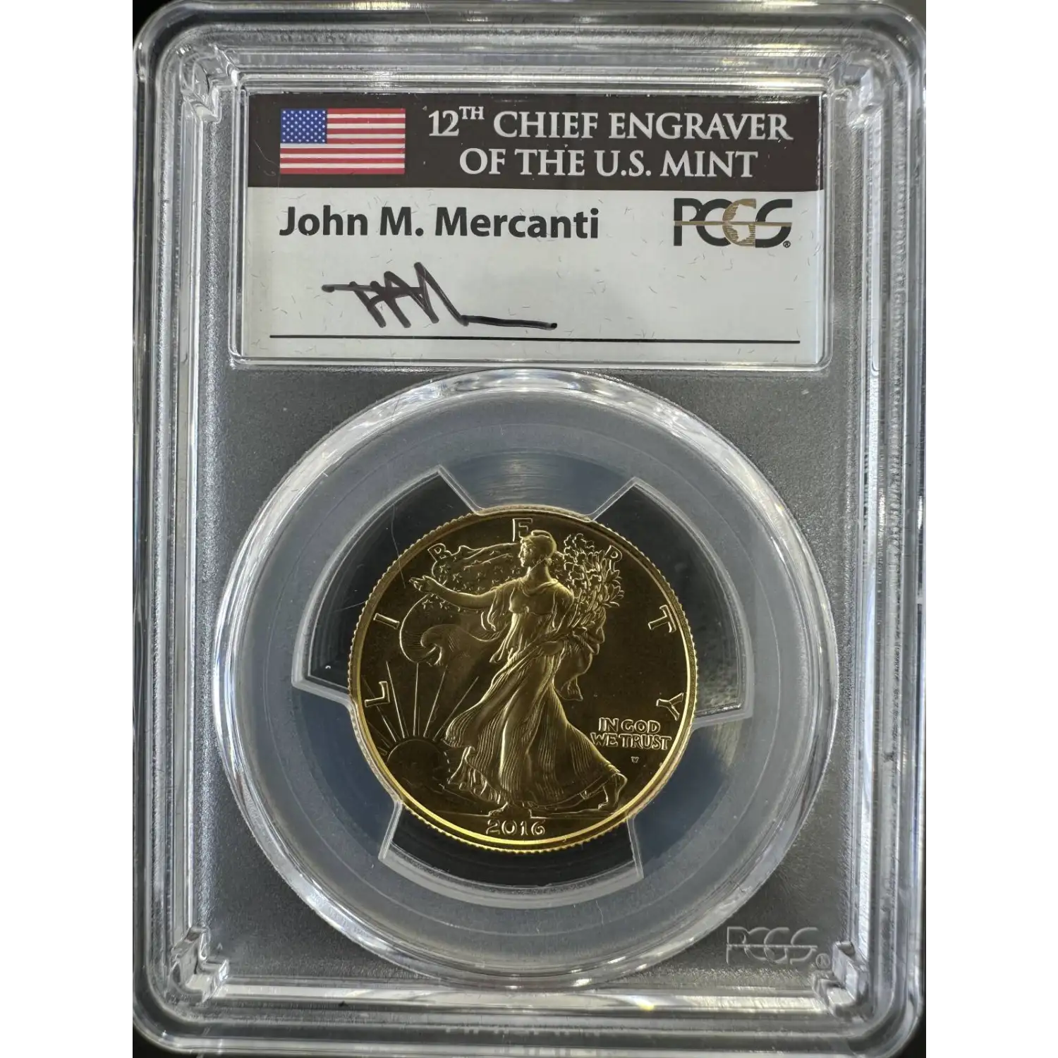 2016 W 50C 100th Anniversary Gold Walking Liberty Half Dollar Commemorative PCGS SP-70 First Day of Issue John Mercanti Signed