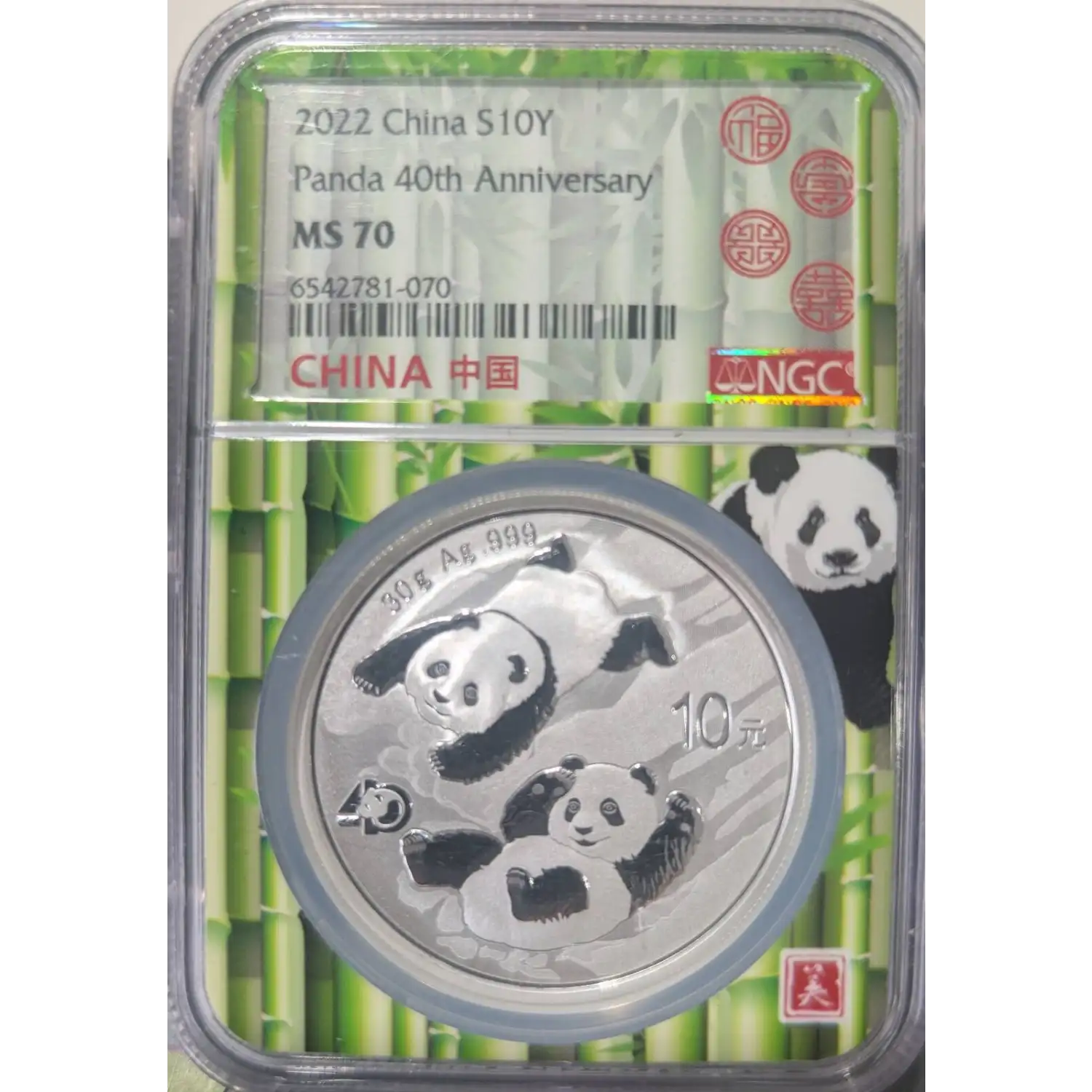 2022 China 10 Yuan - 30g Silver Panda 40th Anniversary - NGC MS70