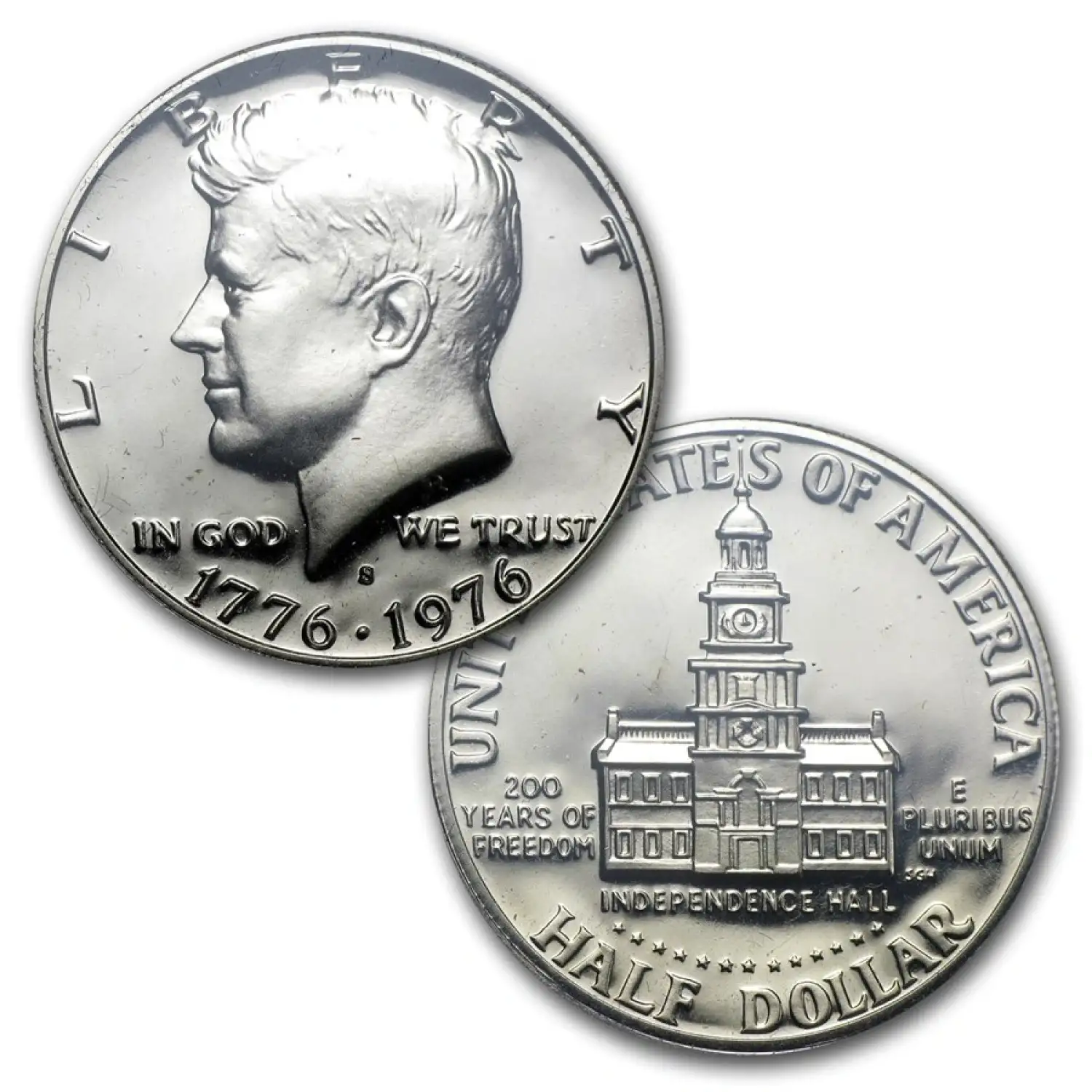 This three-coin set contains proof examples of the Bicentennial design quarter, half dollar and dollar, struck in 40% Silver.