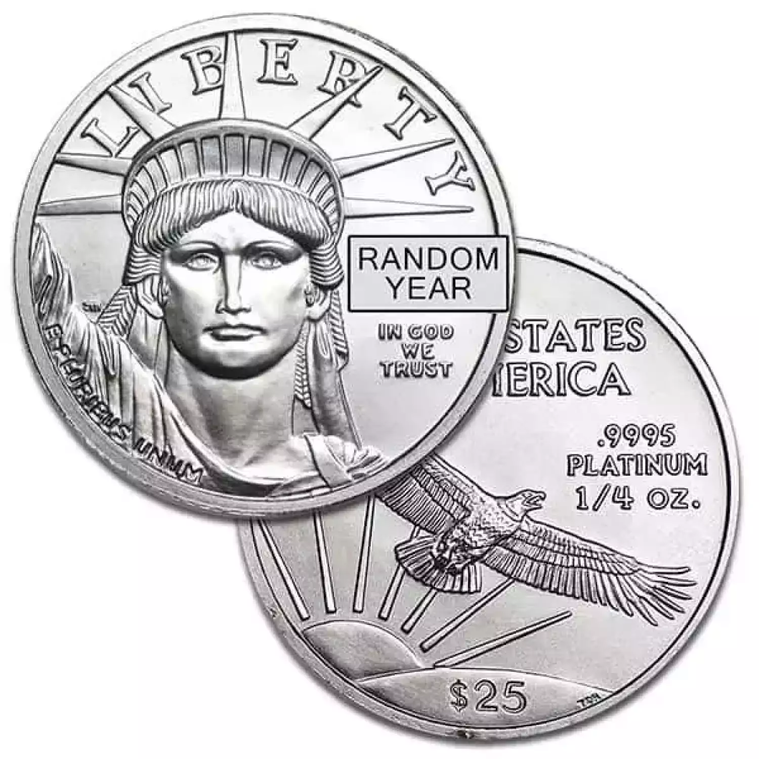 American Platinum Eagle Coins are highly popular among investors and collectors across the globe. The design of these coins reflects the American spirit of freedom. These beautiful coins are manufactured in 1 oz, 1/2 oz, 1/4 oz, and 1/10 oz denominations by the US Mint and are guaranteed by the United States Government for their iconic design and purity. The 1/4 oz American Eagle Platinum coin is composed of 1/4 troy ounce of .9995 fine platinum and has a legal tender value of 25 USD.