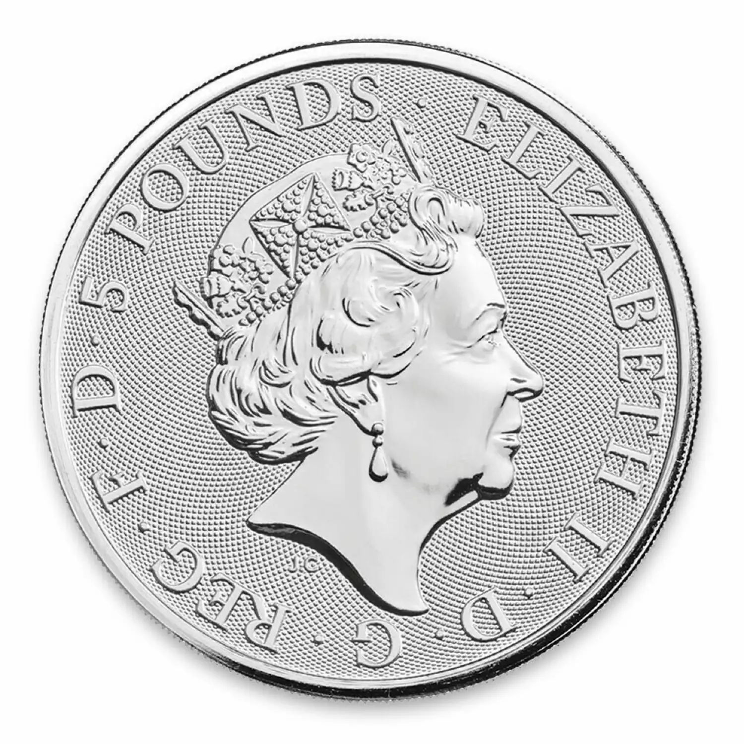The 2020 2oz Britain Silver Queen's Beast: The White Lion of Mortimer is the first release in an exciting new 10 coin series. The Britain Queen's Beasts celebrate the British Monarch and the centuries of fascinating heraldry. This strikingly beautiful silver coin contains 1 oz of .9999 fine silver.This two ounce silver bullion coin is the sixth addition to The Queen’s Beasts bullion range. Inspired by ancient symbols of power and identity, the range brings to life the ten imposing statues that lined the entrance to Westminster Abbey in 1953 at the coronation of Her Majesty The Queen.