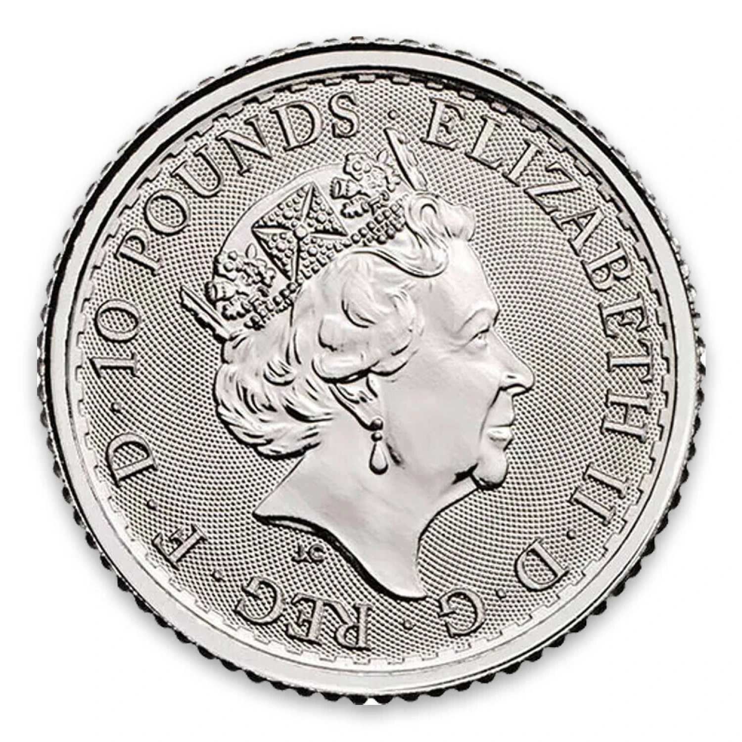 The 1/10oz British Platinum Britannia is the newest annual release of the Britannia Platinum coins and is composed of 1/10 oz of 999.5 fine platinum. The obverse of the coin witll either feature Queen Elizabeth II or King Charles III. The reverse depicts the image of Britannia, guardian of Britain. These striking platinum coins appeal to both investors and collectors.