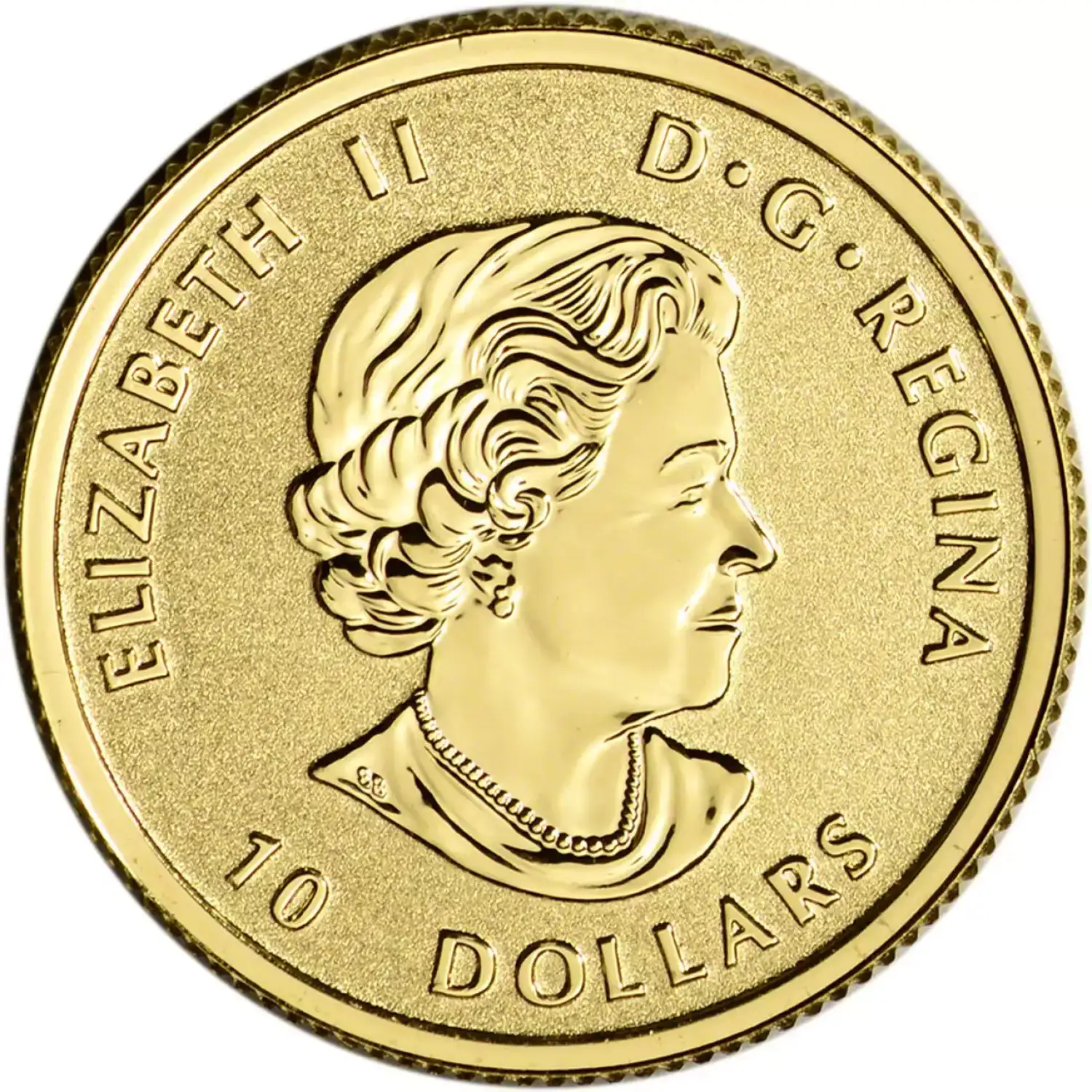 The obverse of 2019 Canadian Gold Horse Reverse Proof Coins features the fourth-generation portrait of Queen Elizabeth II from Susanna Blunt. Designed in 2003, this right-profile portrait depicts the Queen without a crown and is accompanied by engravings of her name, the face value, and the Latin phrase “D.G. Regina.”
