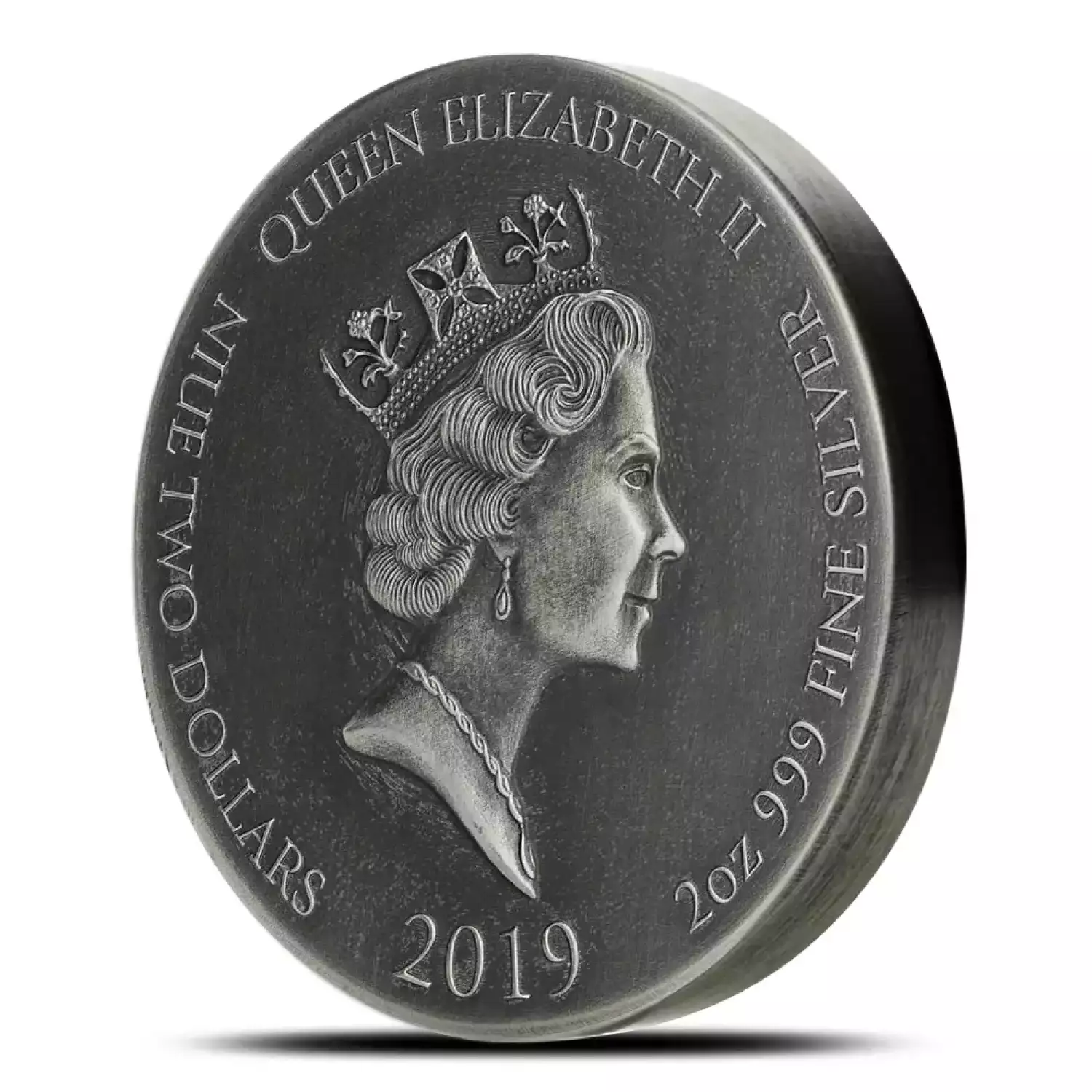 Queen Elizabeth II features on the obverse of all 2019 Niue Moses on the Nile Biblical Silver Coins. Her Majesty is shown here in right-profile relief with the George IV State Diadem Crown on her head. This image was created in 1984 by Raphael Maklouf and featured prominently on British denominations through 1997, as well as other Commonwealth currencies.