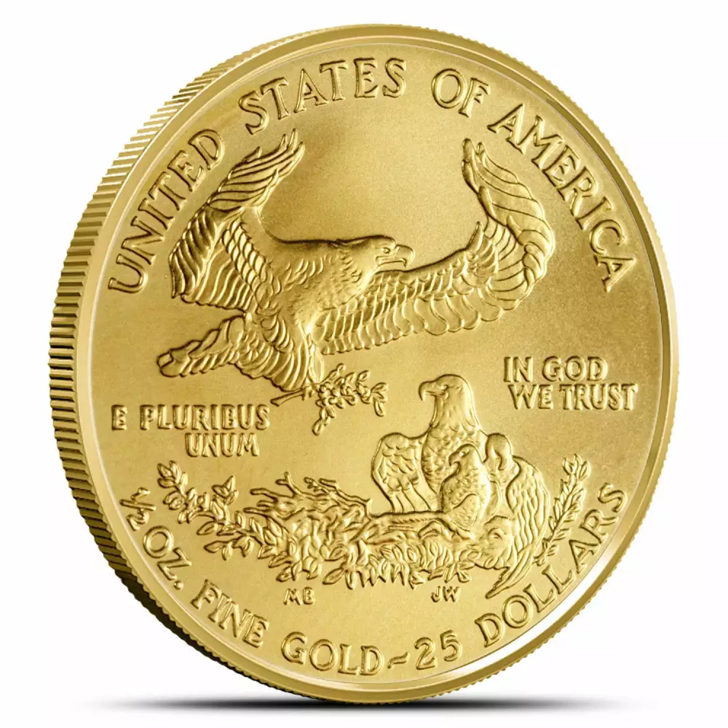 The American Gold Eagle is one of the official Gold Bullion Coin of the United States Mint. These coins are guaranteed by the U.S. government to contain 1/2oz (troy ounce) of fine gold. By law, the gold must come from sources in America.