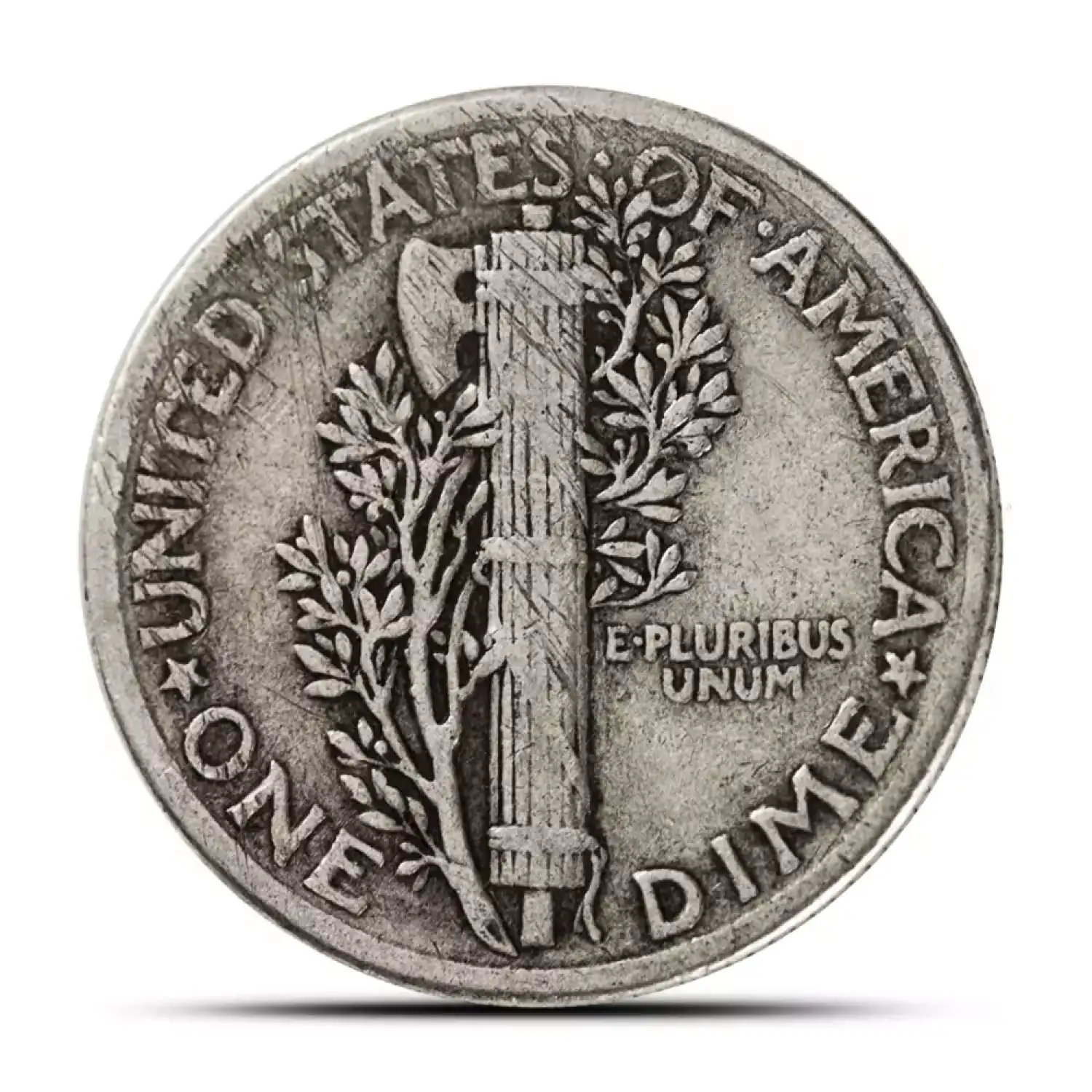 The reverse of all coins features the image of a Roman fasces wrapped in the olive branches of peace. This too was designed by Weinman during the competition to create new coinage depictions for US coins. Weinman’s Mercury Dime design replaced the long-running Barber Coinage of the US Mint, which had been created by US Mint Chief Engraver Charles E. Barber.