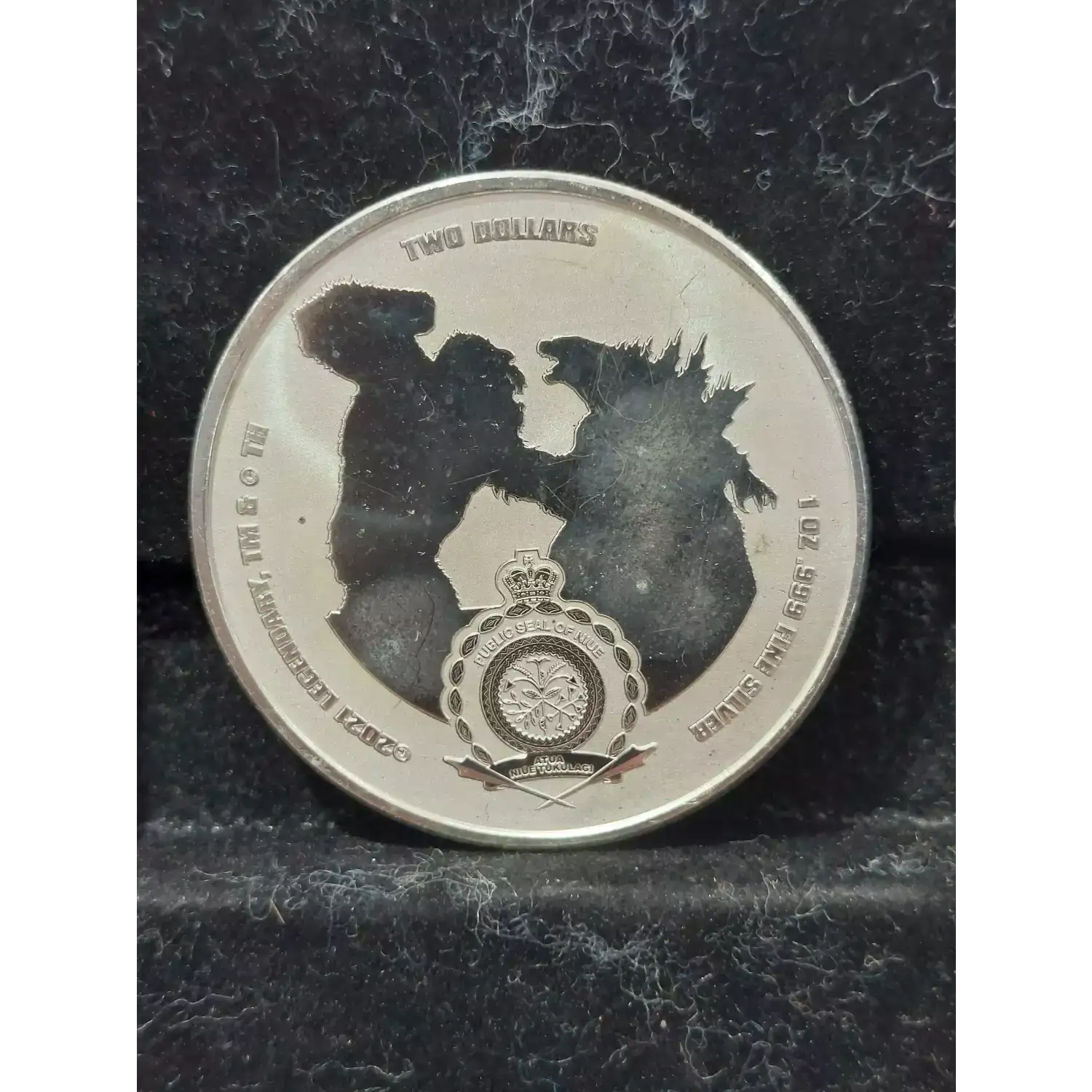 Celebrate the Godzilla vs. Kong movie with this Silver BU coin featuring Godzilla. There is an extremely limited mintage of 25,000 coins.