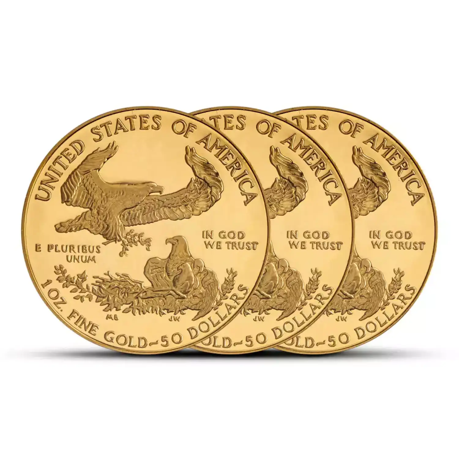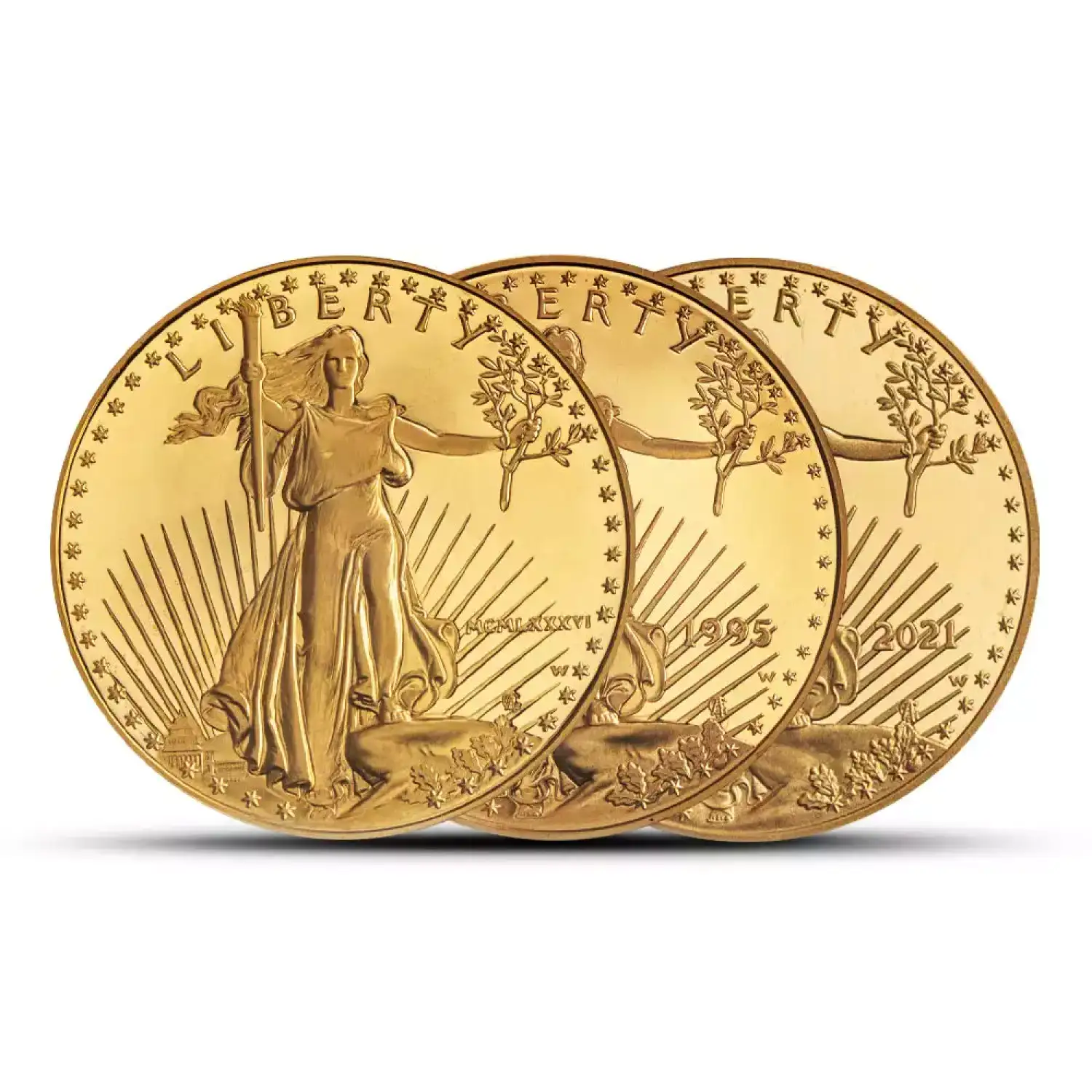 The American Gold Eagle is the official gold bullion coin of the United States. Available as bullion, proof, and burnished coins, the series offers four weights in the bullion and proof options with just a 1 oz gold coin in the burnished series. The Proof American Gold Eagle offers visual brilliance with one of the nation’s greatest historic coin designs on the obverse.