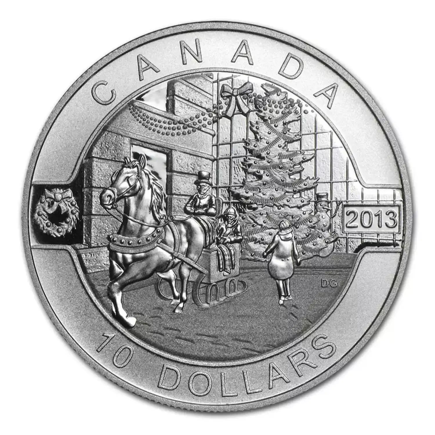 The last coin in the 12-coin "O Canada" series features a horse-drawn sleigh ride scene.