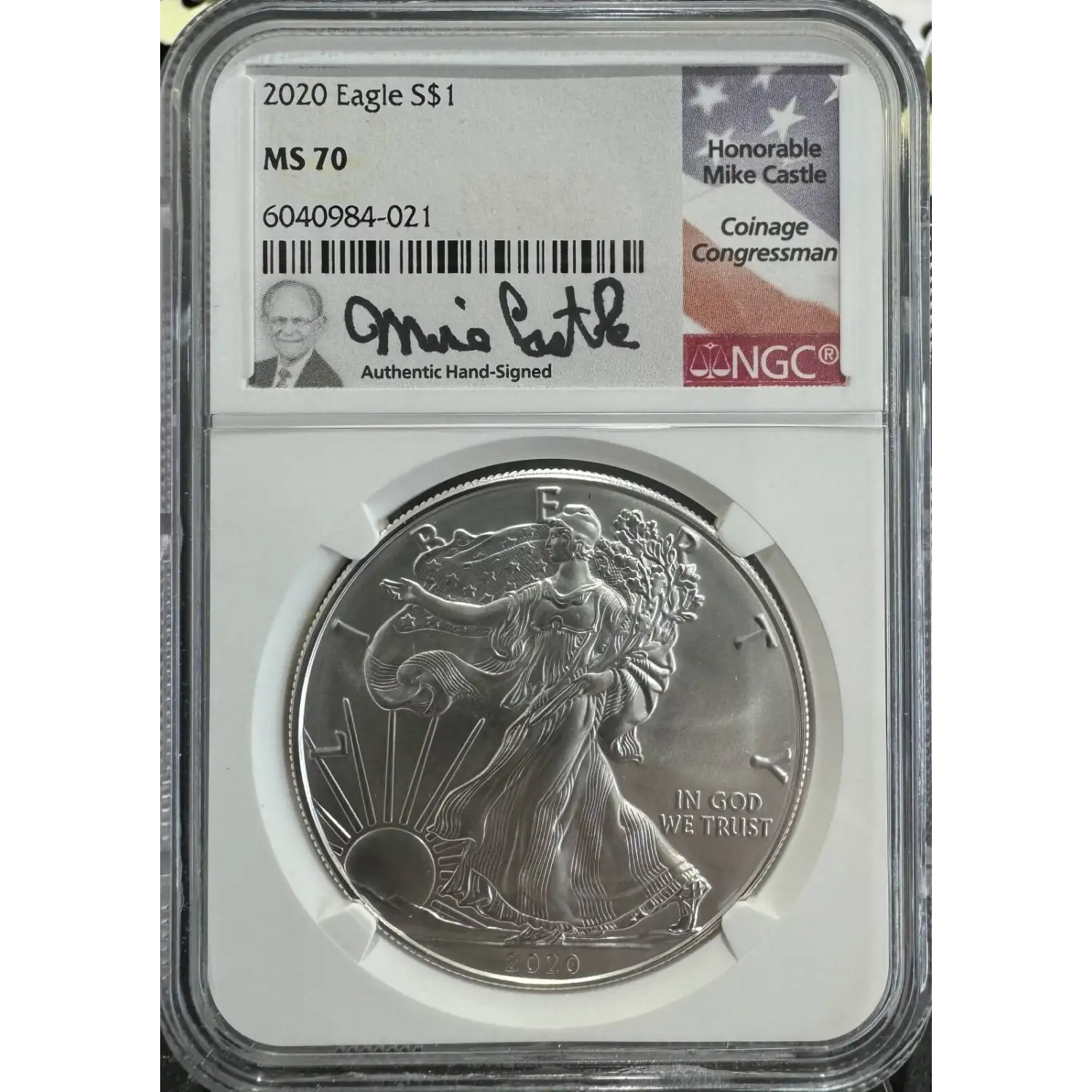 | Name | 2020 American Silver Eagle NGC MS70 - Honorable Mike Castle Signed |