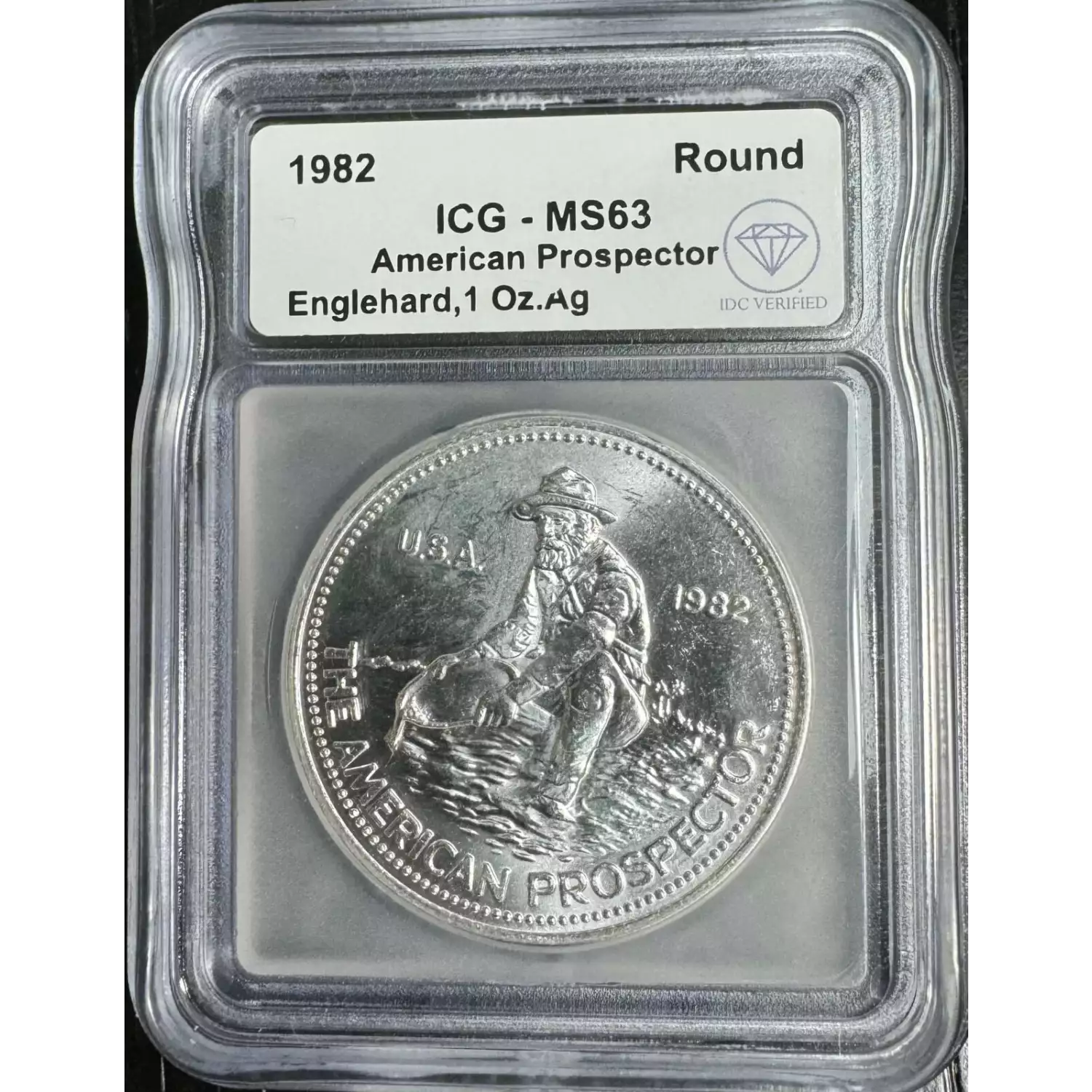| Name | 1982 IDC Verified 1 oz Silver Engelhard Prospector Round ICG MS63 - 1st Year of Production |