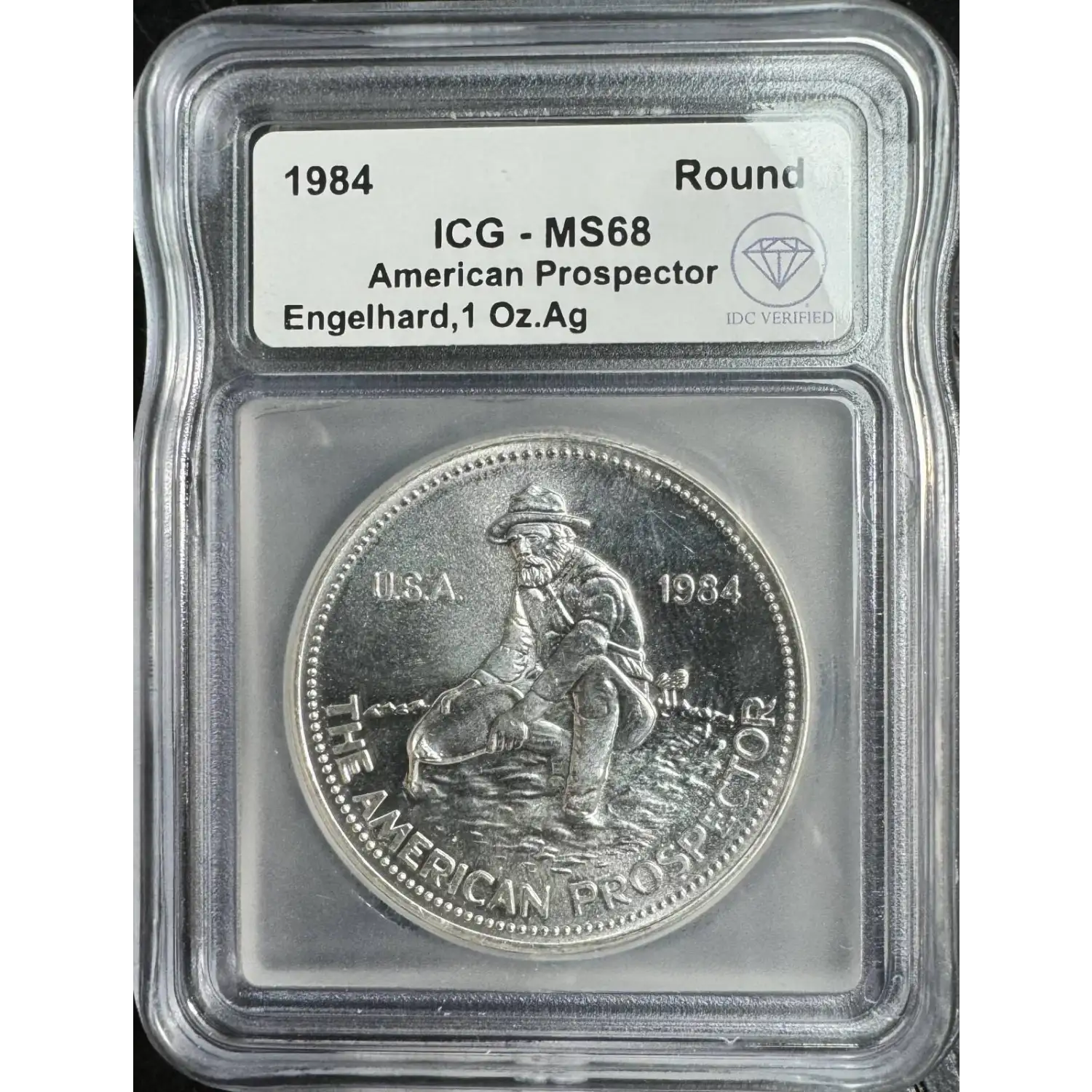 | Name | 1984 IDC Verified 1 oz Engelhard Prospector Round ICG MS68 |