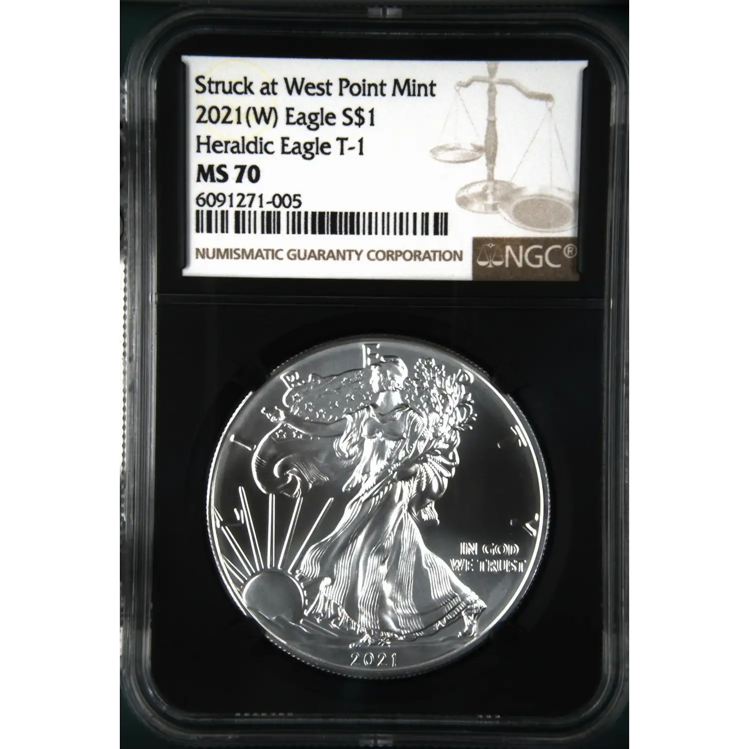 2021 (W) American Silver Eagle NGC MS-70 Heraldic Eagle T-1 Struck at West Point Mint