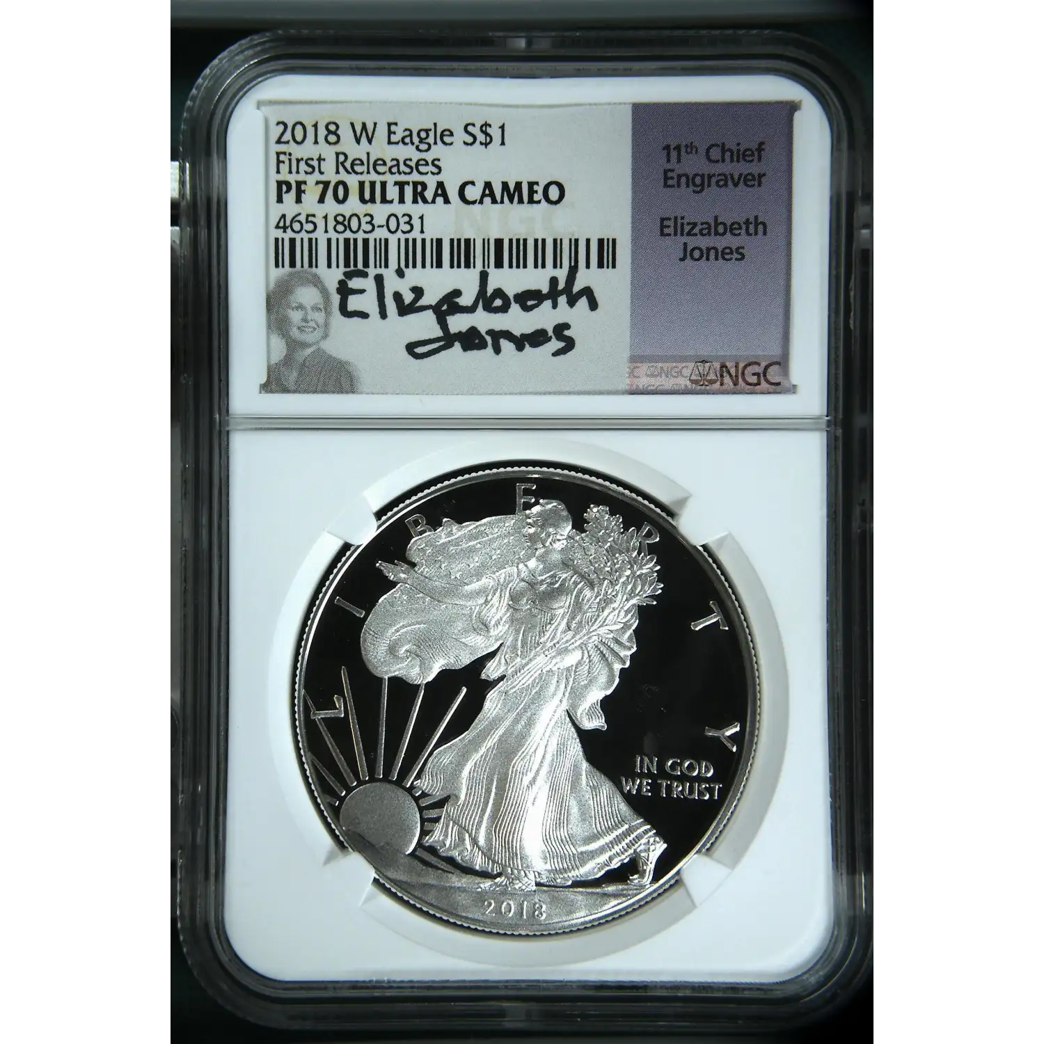 2018 American Silver Eagle NGC PF-70 First Releases ULTRA CAMEO Elizabeth Jones Signed