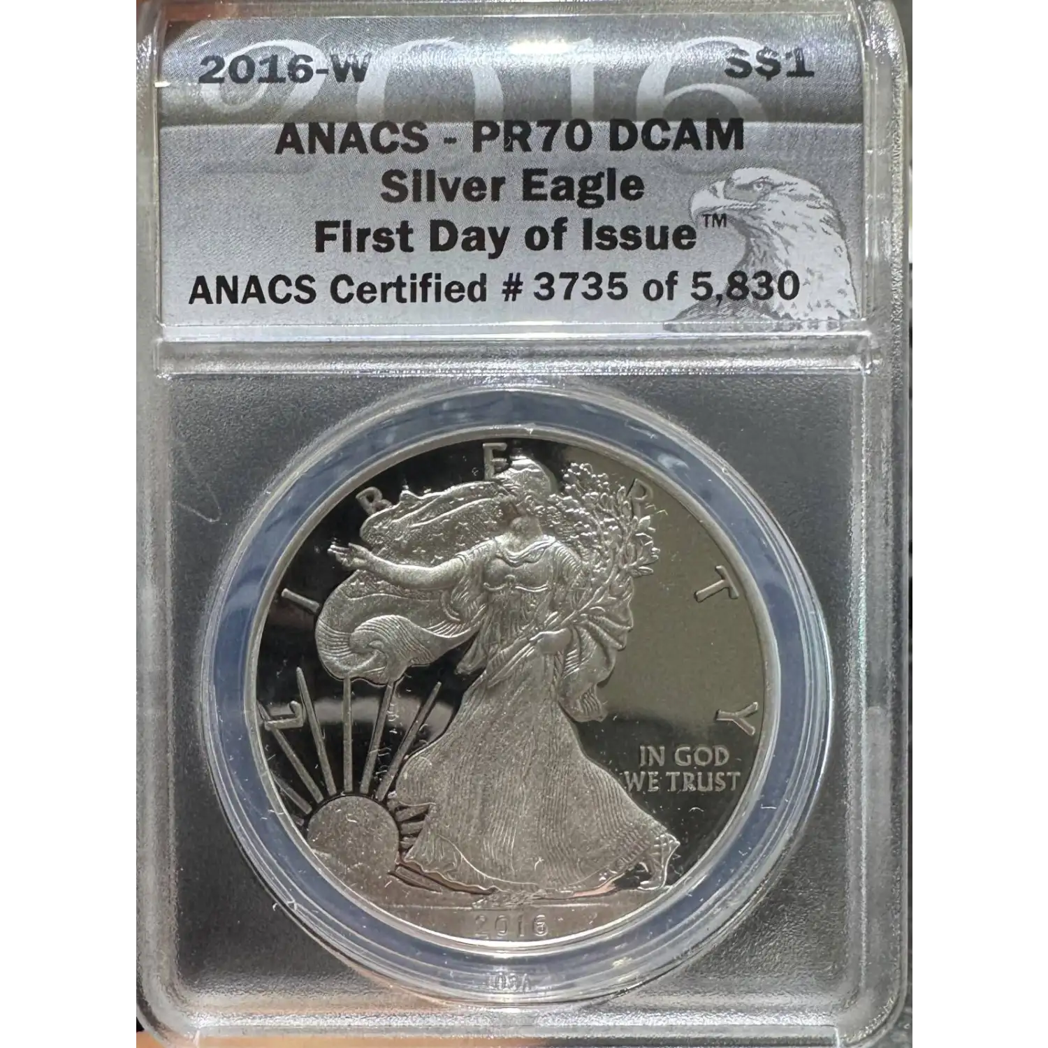 2016 W American Silver Eagle ANACS PR-70 First Day of issue #3735 of 5,830 DCAM