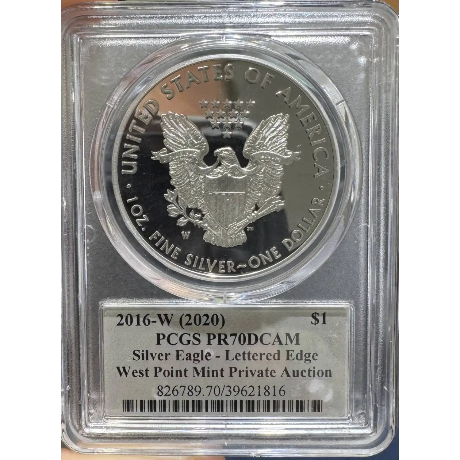 | Name | 2016-W (2020) American Silver Eagle PCGS PF70 DCAM West Point Mint Private Auction Cleveland Signed |