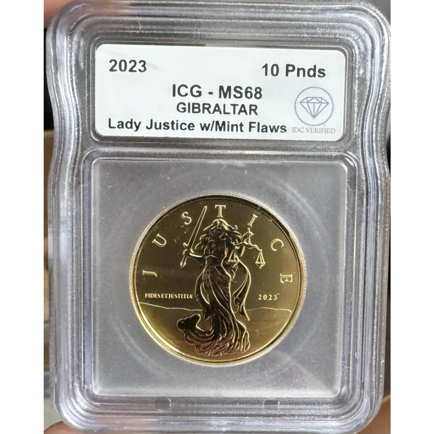 2023 Gold Gibraltar Lady Justice ICG MS-68 IDC Verified