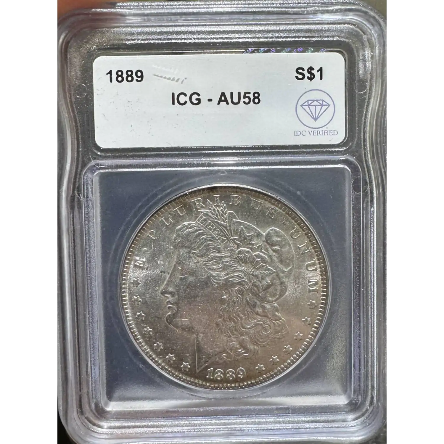 | Name | 1889 Morgan Dollar ICG AU58 IDC Verified |