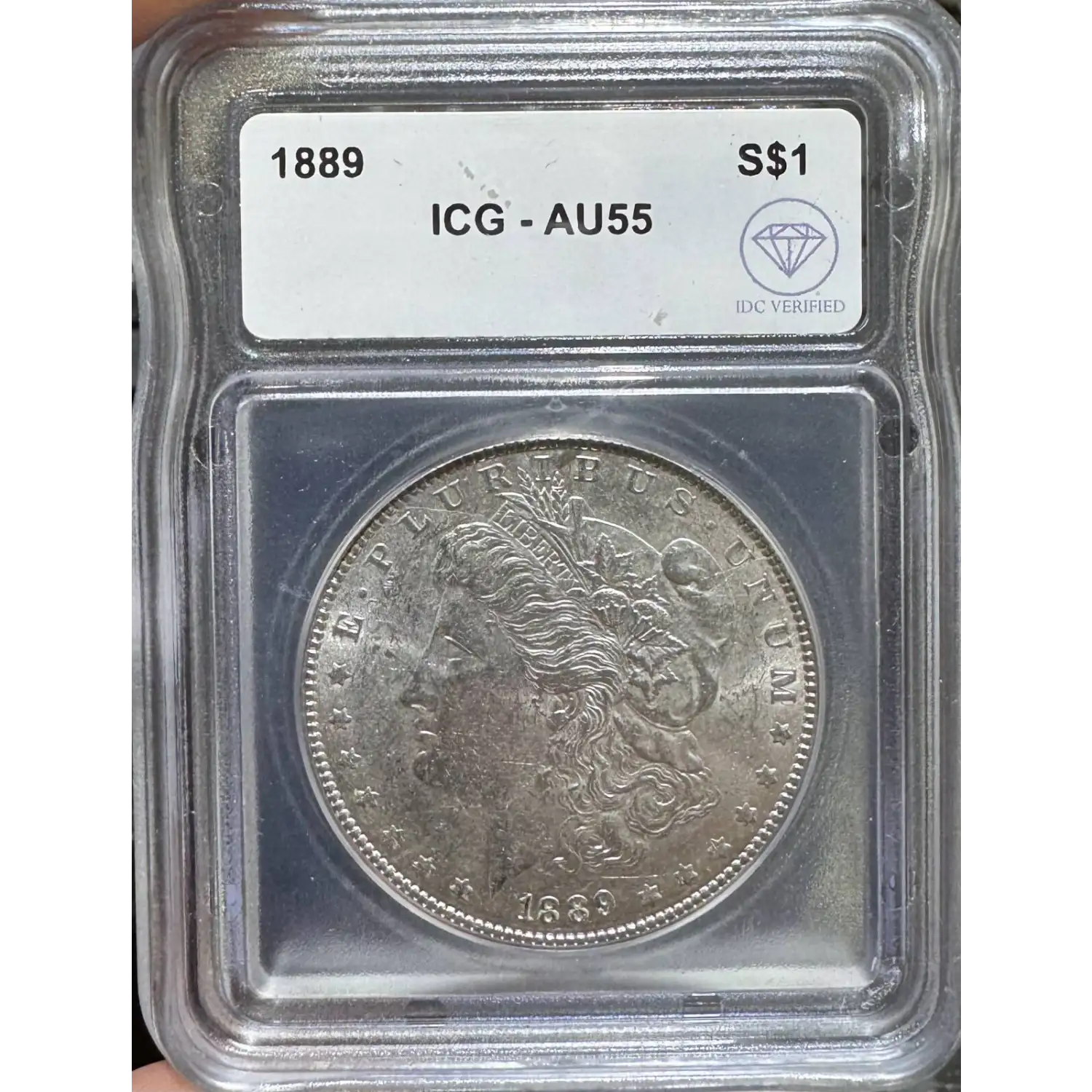 | Name | 1889 Morgan Dollar ICG AU55 IDC Verified |