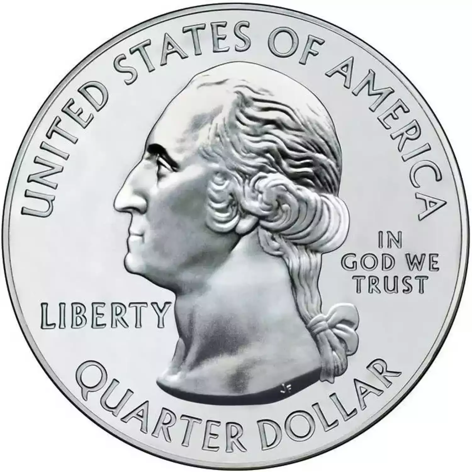 Each 2013 5 oz ATB White Mountain Silver Coin is produced with five troy ounces of .999 pure silver. The coin features the inscriptions “White Mountain,” “New Hampshire,” “2013,” and “E Pluribus Unum.” Customers will note the beautiful detail of this coin. The coin features Mount Chocorua as well as a pristine body of water, forest grasses, and birch trees. The mint has rendered the scene with exquisite detail and artistry. The obverse side of the coin shows a profile view of George Washington as he appears on the quarter.
