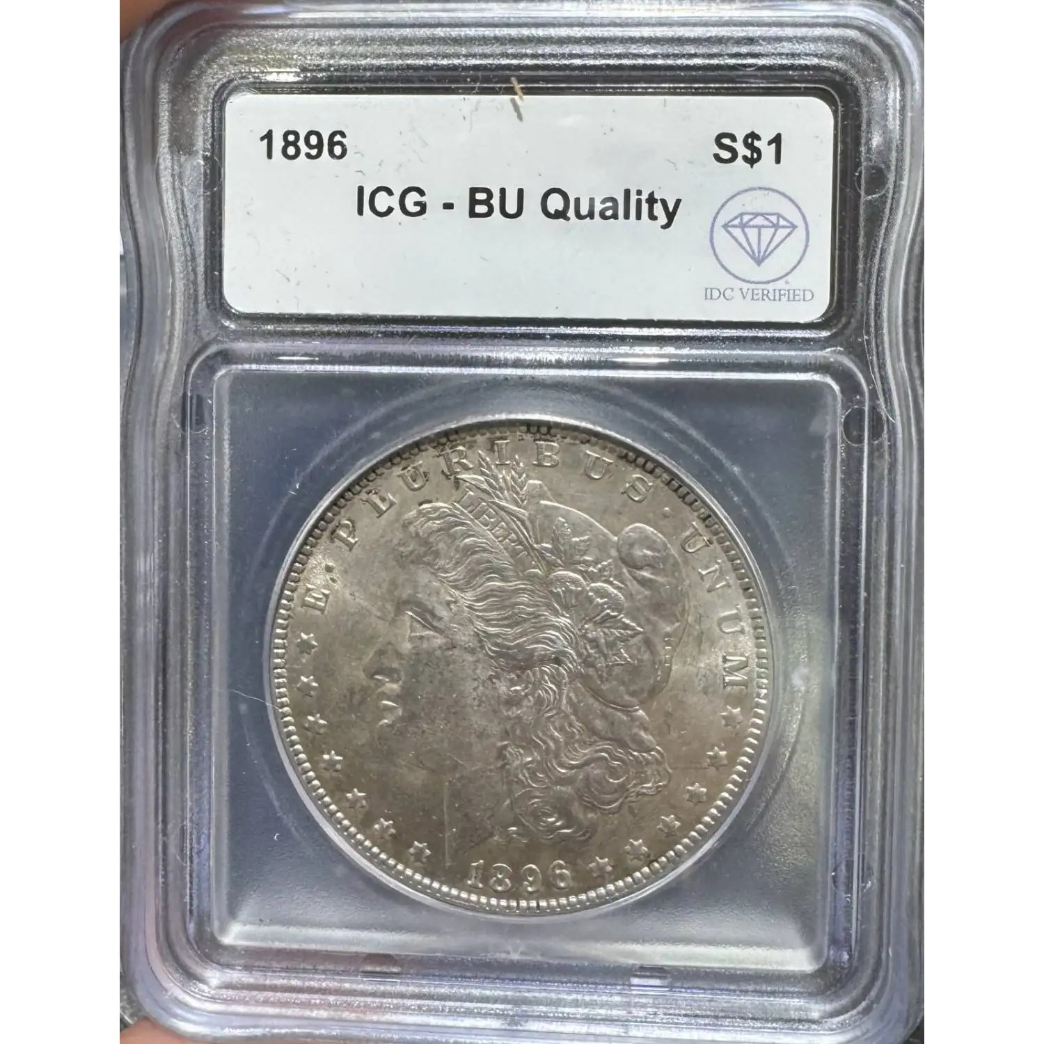 The 1896 Morgan dollar from the Philadelphia Mint is extremely common in all grades through about MS66, scarce in MS67, and extremely rare in MS68. PLs and DMPLs are scarcer than their typical MS counterparts but are by no means rare as a group for this date. The 1896 Morgan dollar is generally found well struck though often with less-than-frosty luster.