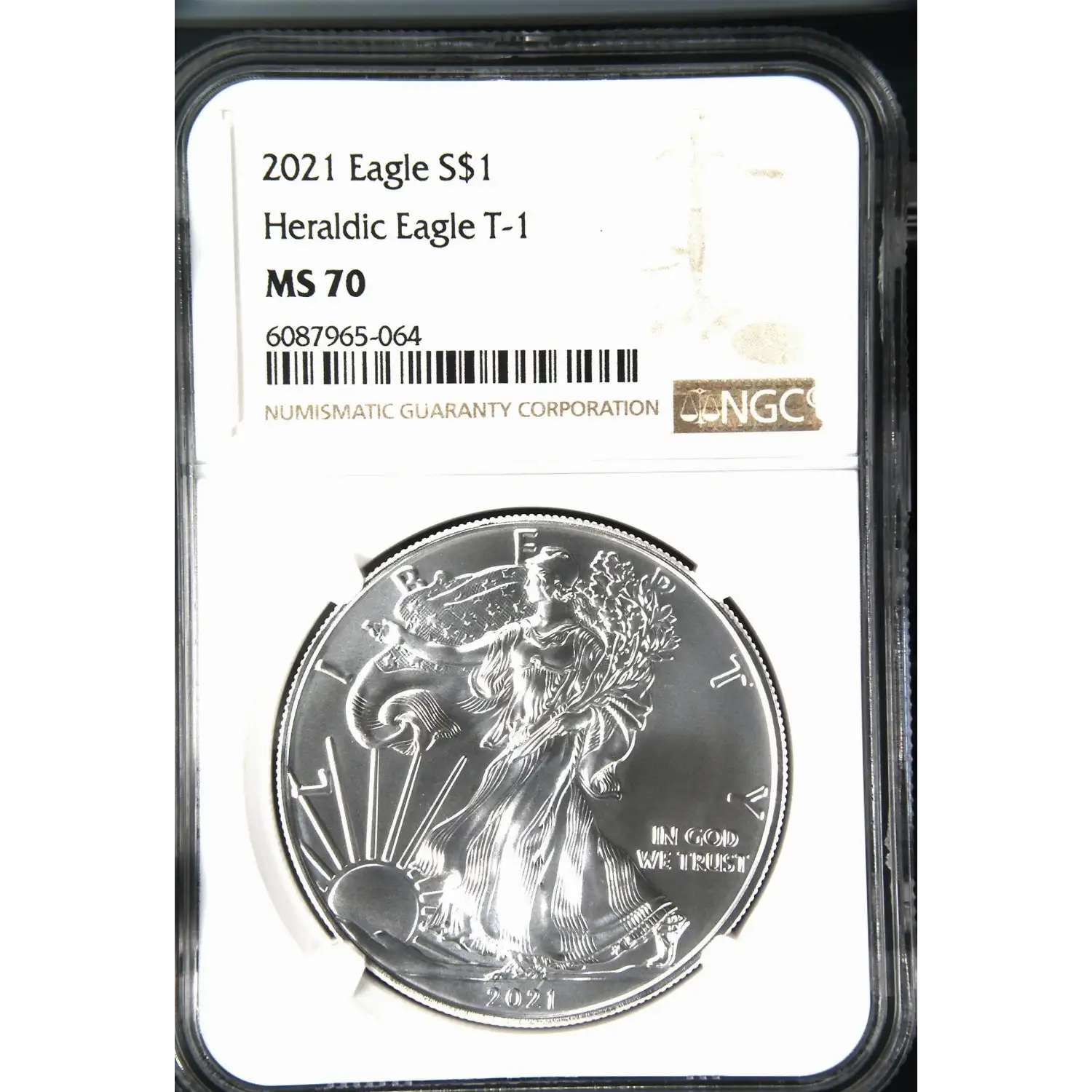 2021 American Silver Eagle NGC MS-70 Heraldic Eagle T-1
