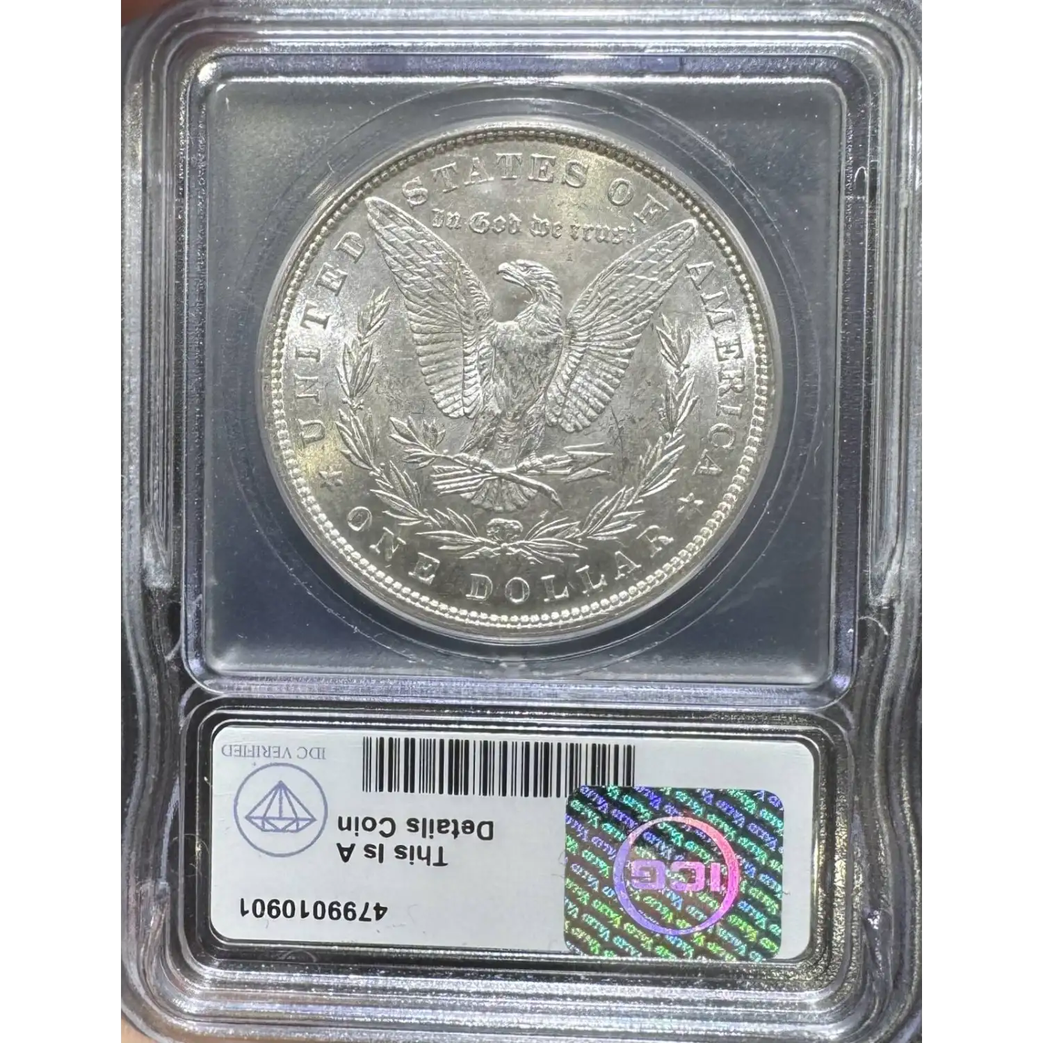 Reverse: The heraldic eagle is centered holding a bunch of arrows and branch surrounded by and olive leaves. The words UNITED STATES OF AMERICA * ONE DOLLAR frame the periphery. Mint mark, if any, appears above the letters DO of DOLLAR.