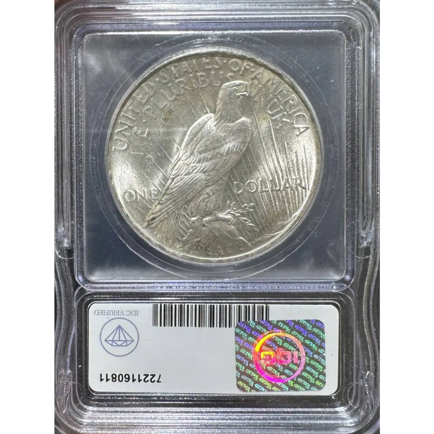 Reverse: Perched eagle standing on a rock facing the right with UNITED STATES oF AMERICA and E PLURIBUS UNUM at the top periphery. The denomination of ONE DOLLAR left and right of the eagle's tail and the word PEACE at the bottom. Mintmark, if any, appears below the word ONE on the left side.