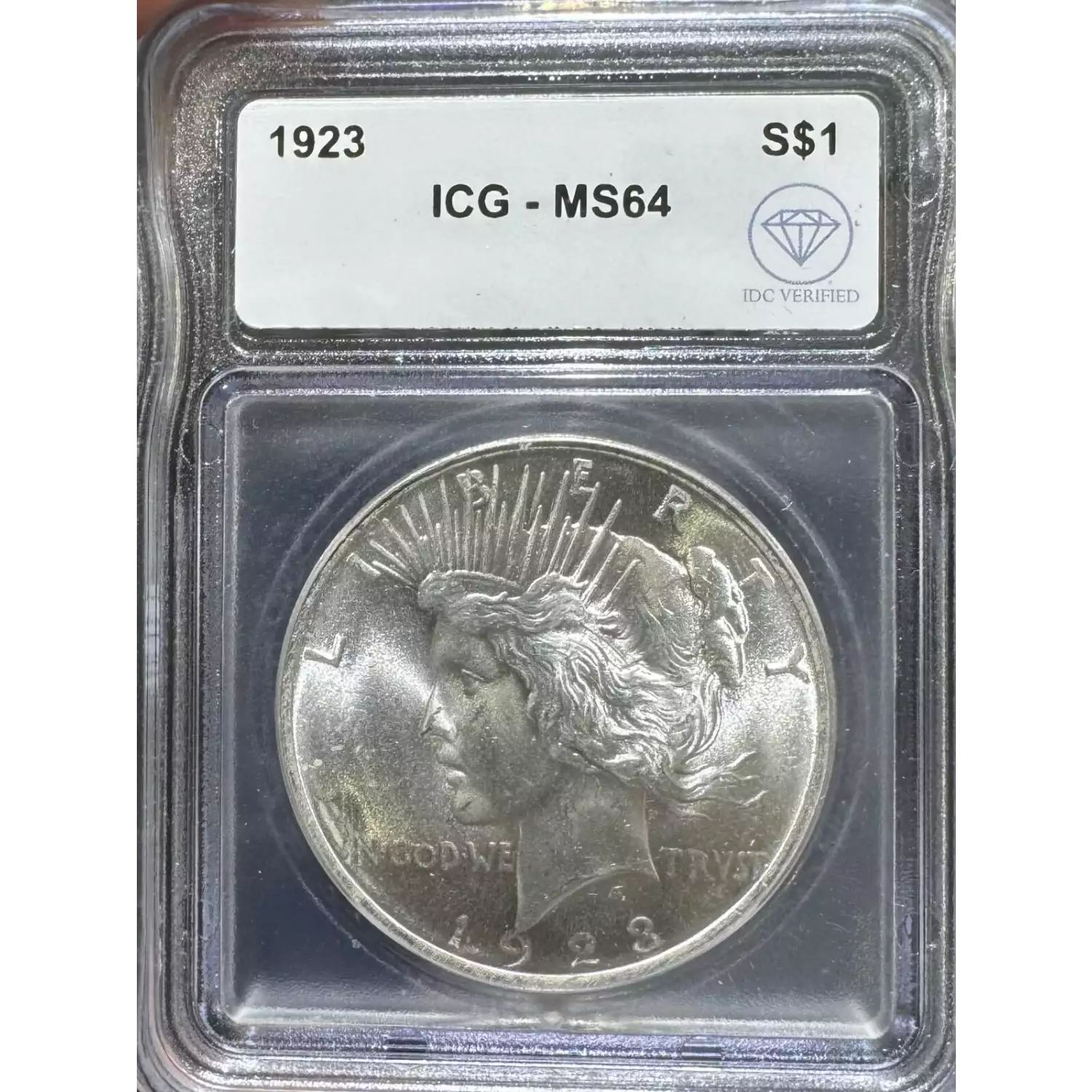 | Name | 1923 Peace Silver Dollar ICG MS64 IDC Verified |