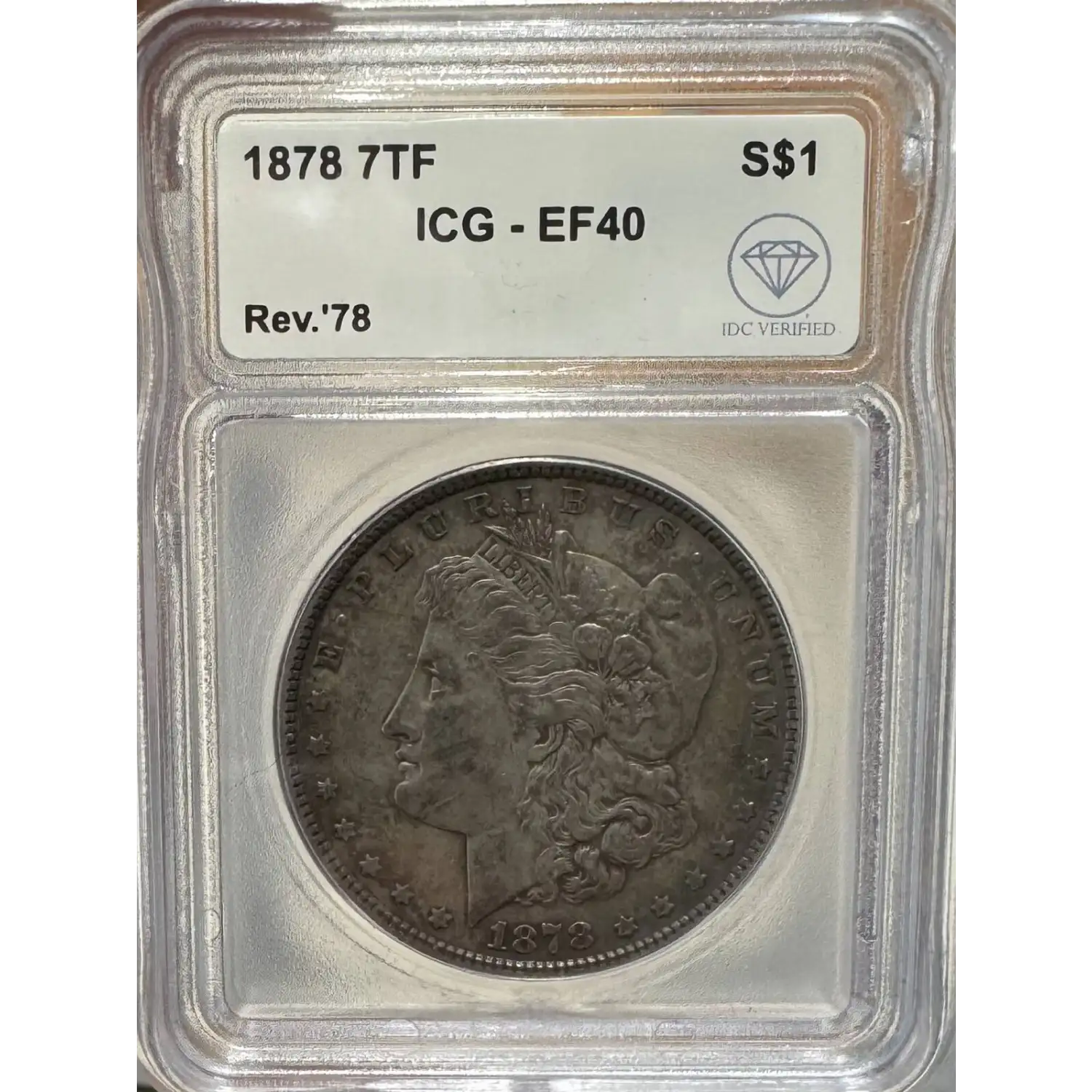 | Name | 1878 7TF Morgan Dollar ICG EF40 Rev '78 IDC Verified |