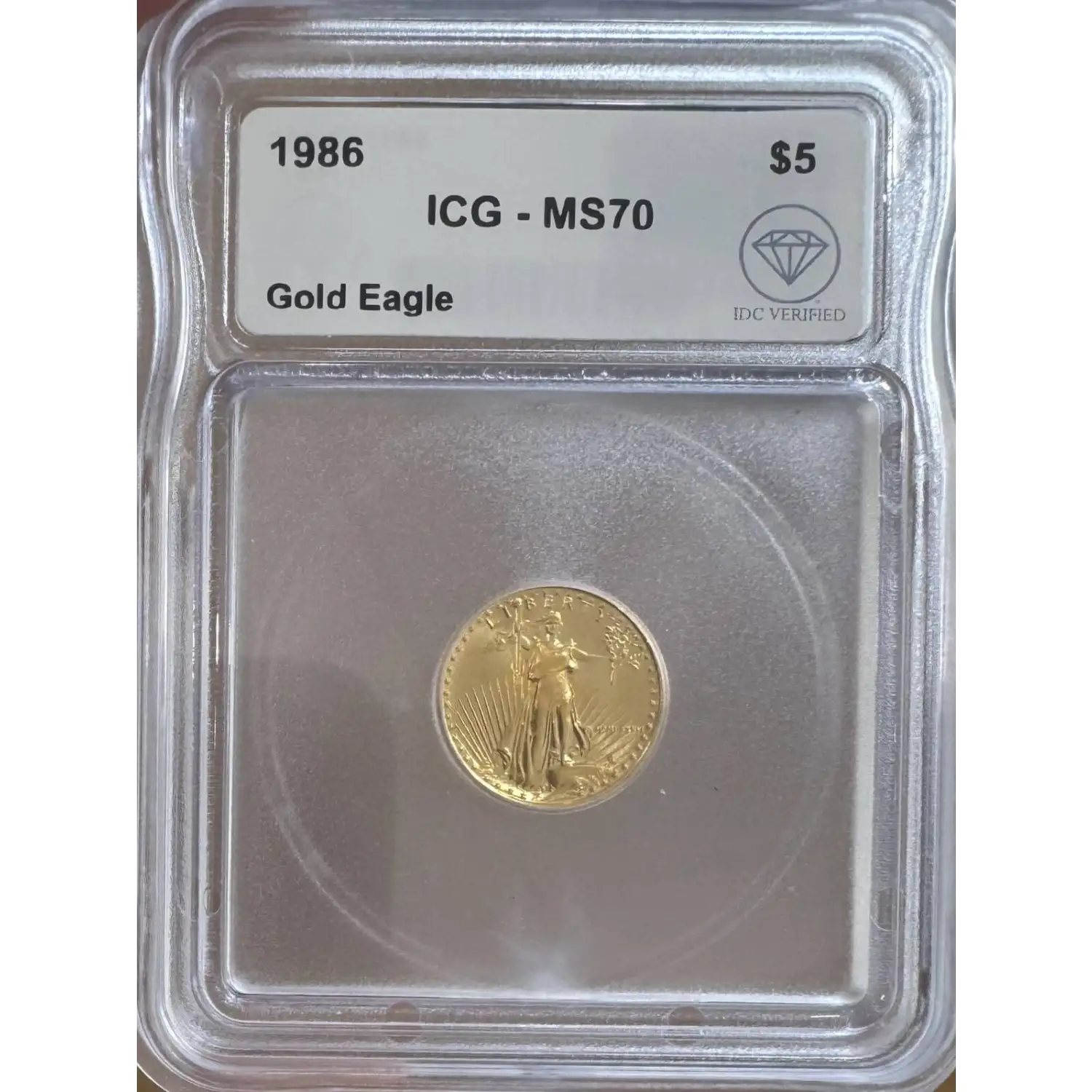 The 1986 5 Dollars is part of a series of Gold Eagle coins struck from 1986-Present. The specific variety is Gold Eagle. Struck in Philadelphia and designated as a Business (MS) strike, this coin is made of 91.67% gold; 3% silver; 5.33% copper from a mintage of 912,609 struck.