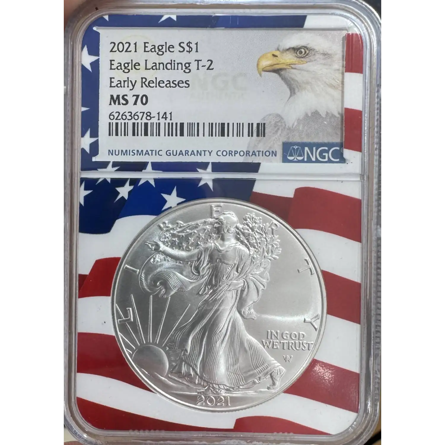 | Name | 2021 American Silver Eagle NGC MS70 T-2 Early Release (Eagle Label/USA Flag Core) |