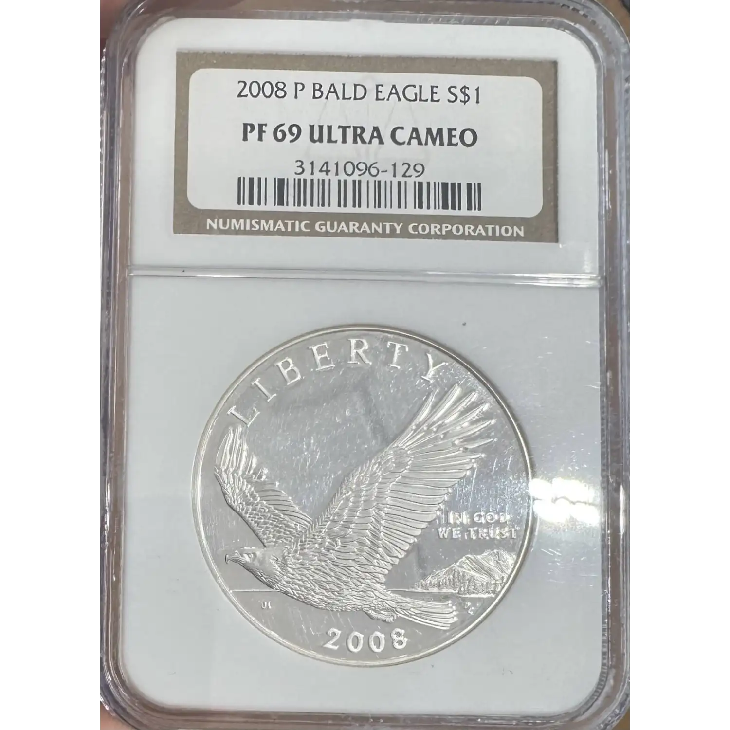 The 2008-P Silver dollar is part of a series of Modern Commemorative coins struck from 2008. The specific variety is Bald Eagle Recovery. Struck in Philadelphia and designated as a Business (MS) strike, this coin is made of 90% silver, 10% copper from a mintage of 119,204 struck.
