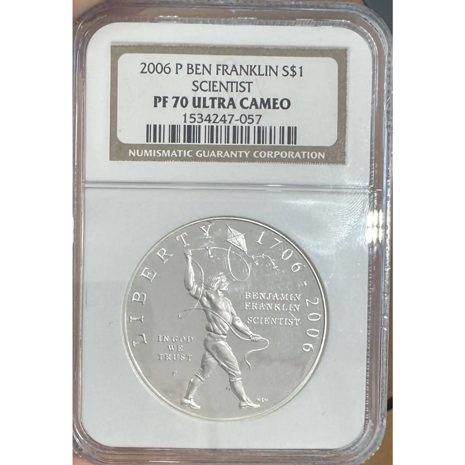 The 300th Anniversary of the Birth of Benjamin Franklin was an auspicious event for America. Of all the “Founding Fathers” Franklin is the only one to have signed all four of our most important documents: the Declaration of Independence, the Treaty of Alliance with France, the Treaty of Paris which ended the Revolutionary War and the United States Constitution. The Congress of the United States voted for and approved two commemorative silver dollars for the event. One would depict Franklin as a younger man and the other in his later years. They would be called the “Scientist” for the younger Franklin and the “Founding Fathers” for the older Franklin.