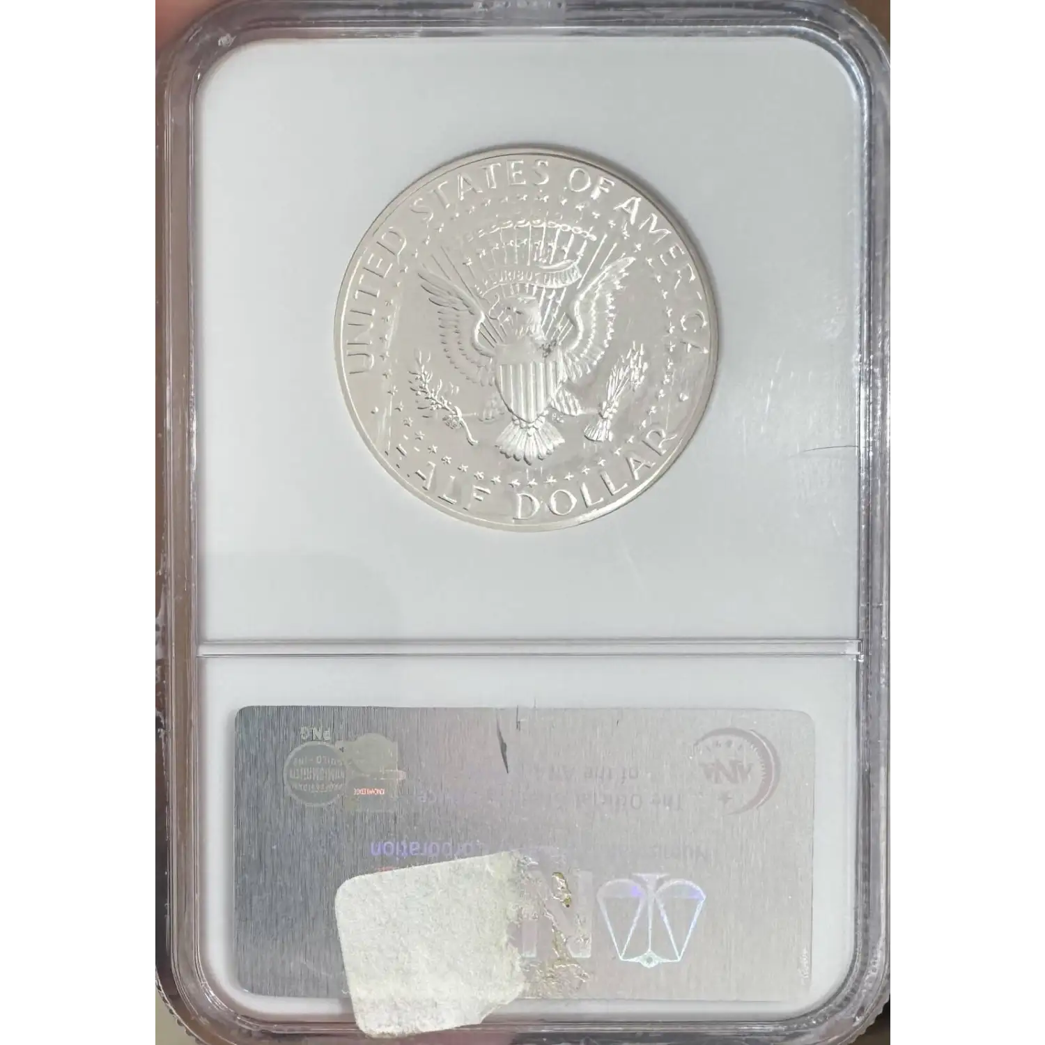 Reverse: The heraldic eagle holding arrows and branch of olive leaves with a full circle of stars around it. UNITED STATES OF AMERICA * HALF DOLLAR surround the periphery.