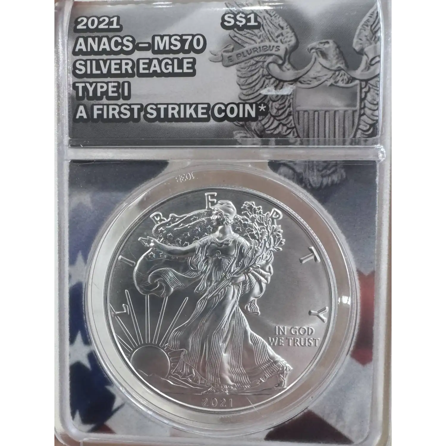 The 2021 One dollar is part of a series of Silver eagle coins struck from 1986-Present. The specific variety is Silver Eagle, Type 1. Struck in Philadelphia and designated as a Business (MS) strike, this coin is made of 99.99% silver, 0.01% copper from a mintage of 13,306,500 struck.