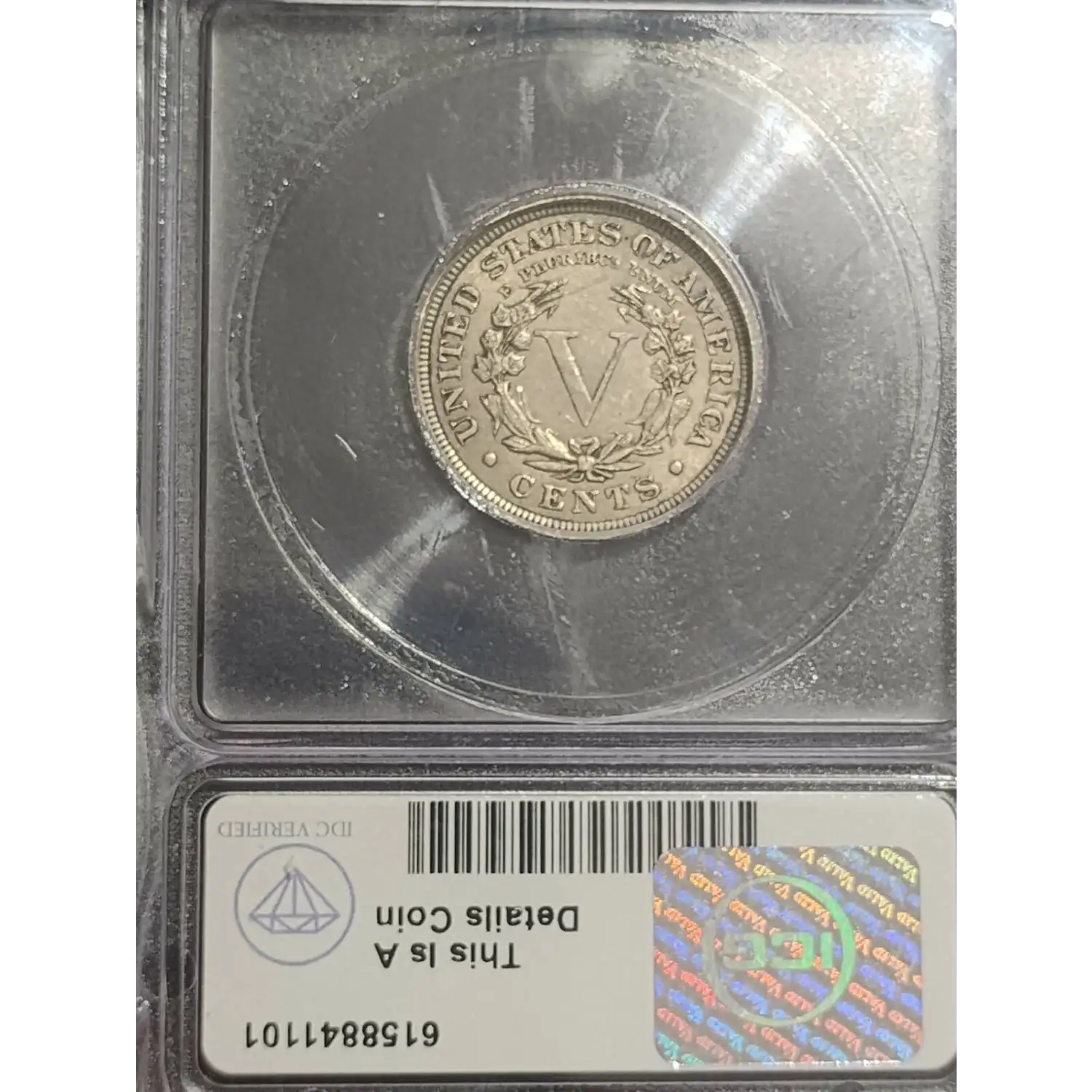 Reverse: Large V (roman numeral 5) is centered in the design surrounded by an ornate wreath with UNITED STATES OF AMERICA * CENTS * around the periphery. The motto E PLURIBUS UNUM appears near the top between the wreath and letters STATES OF AME.