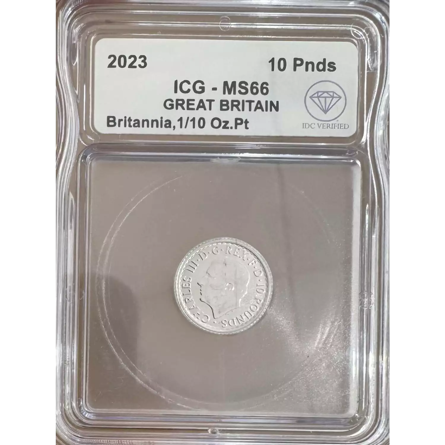 The Royal Mint has released the 2023 Britannia 1/10 oz Platinum bullion coin, featuring the first coinage portrait of His Majesty The King on the obverse. Available in .9995 fine Platinum, this is an excellent investment option for Platinum enthusiasts.