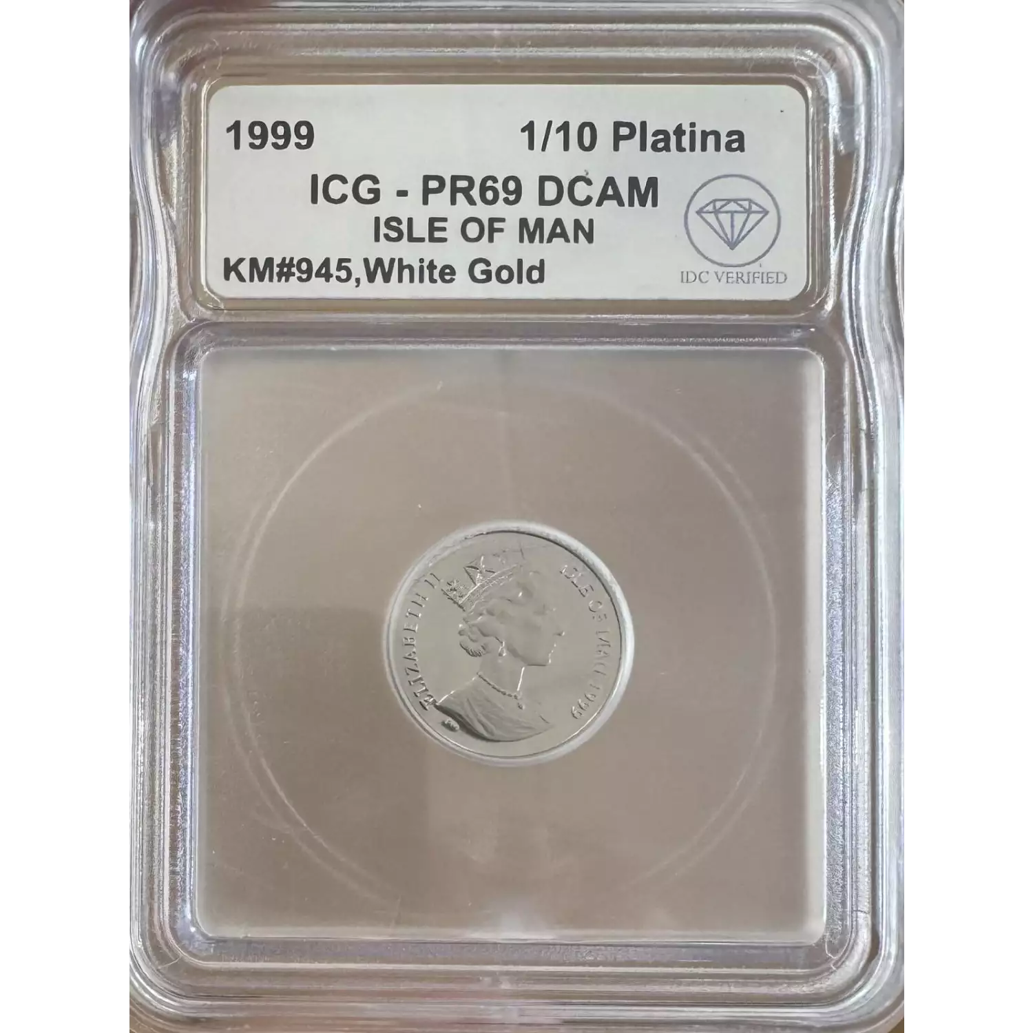 1999 ISLE OF MAN Gold 1/10 PLATINA ICG PR-69 DCAM White Gold IDC Verified KM#945