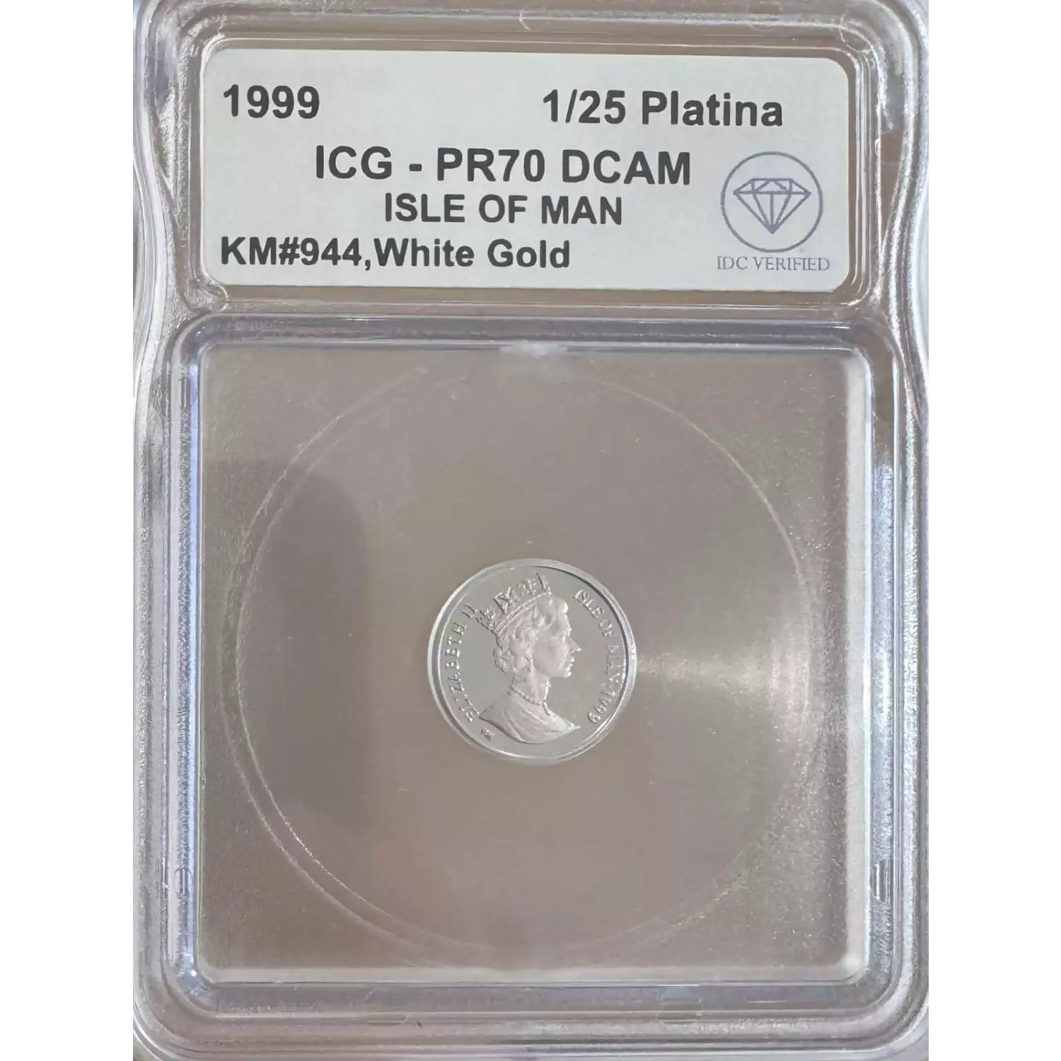 1999 ISLE OF MAN Gold 1/25 PLATINA ICG PR-70 DCAM White Gold IDC Verified KM#944