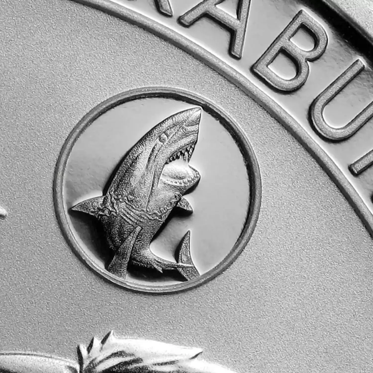 Part of the well-known Kookaburra series from the Perth Mint, this limited edition coin features a shark privy.